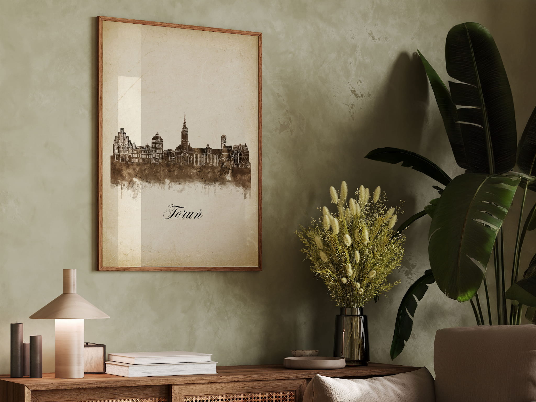 Plakaty skyline w stylu vintage to nowoczesne dzieła sztuki, które nawiązują do estetyki minionych dekad. Przedstawiają miejskie krajobrazy w retro kolorystyce, z wyblakłymi barwami i z delikatną patyną czasu. Kontury są często zmiękczone, a szczegóły budynków lekko stylizowane, co dodaje im nostalgicznego uroku. Tła plakatów utrzymane są w odcieniach przypominających stary papier, z subtelnymi teksturami i ciepłymi, przygaszonymi tonami. Całość tworzy elegancki i przytulny klimat, idealny do wnętrz, które łączą nowoczesność z klasycznym wdziękiem.