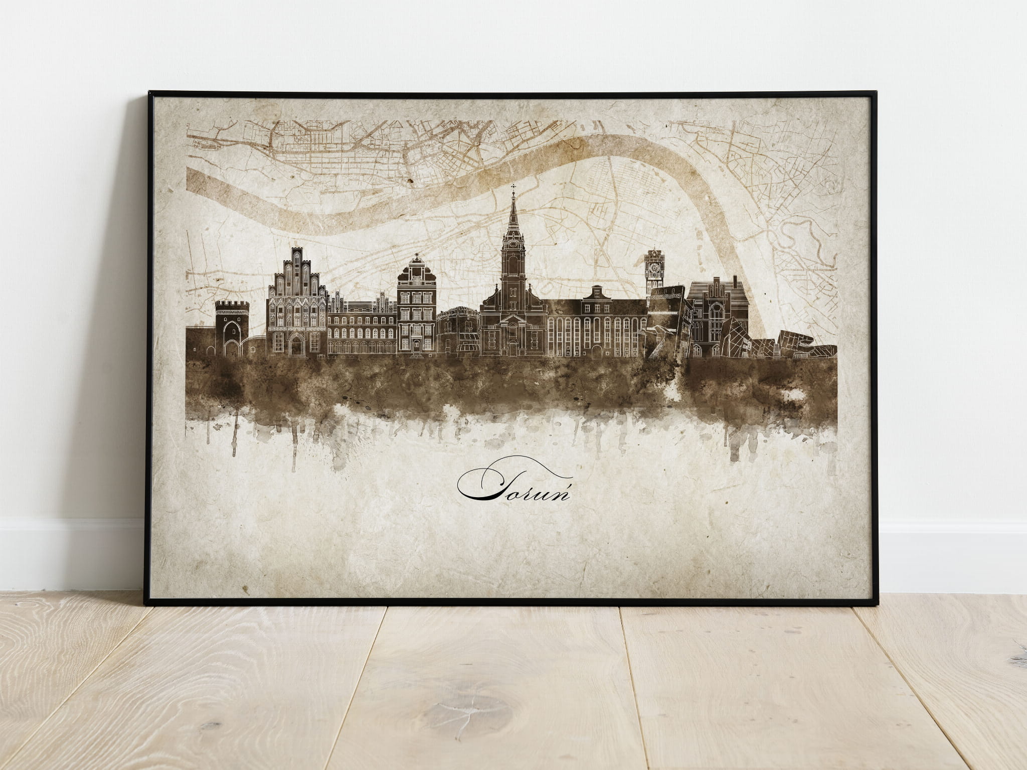 Plakat Skylines Toruń w stylu Vintage- Poziomy