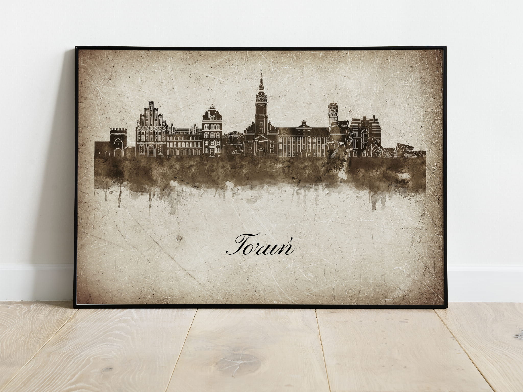 Plakat Skylines Toruń w stylu Vintage- Poziomy
