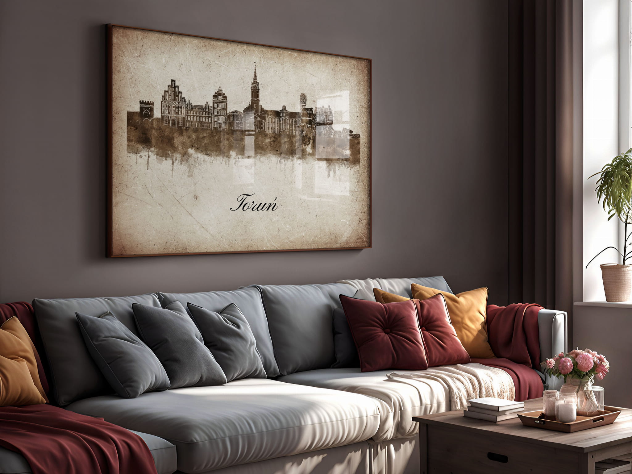 Plakaty skyline w stylu vintage to nowoczesne dzieła sztuki, które nawiązują do estetyki minionych dekad. Przedstawiają miejskie krajobrazy w retro kolorystyce, z wyblakłymi barwami i z delikatną patyną czasu. Kontury są często zmiękczone, a szczegóły budynków lekko stylizowane, co dodaje im nostalgicznego uroku. Tła plakatów utrzymane są w odcieniach przypominających stary papier, z subtelnymi teksturami i ciepłymi, przygaszonymi tonami. Całość tworzy elegancki i przytulny klimat, idealny do wnętrz, które łączą nowoczesność z klasycznym wdziękiem.