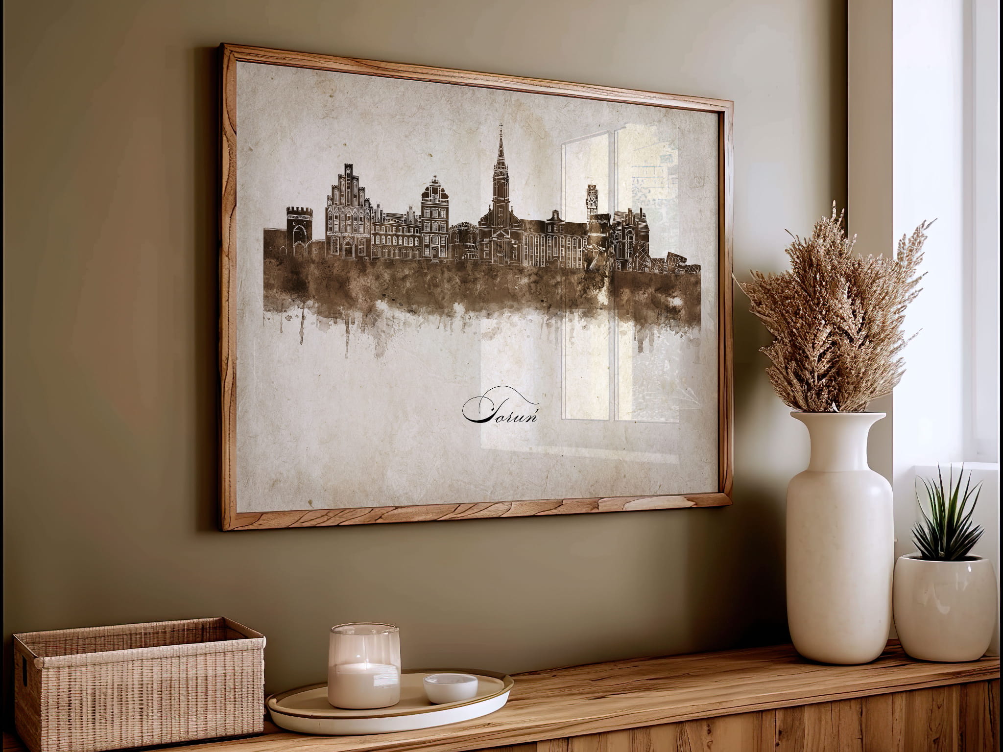 Plakaty skyline w stylu vintage to nowoczesne dzieła sztuki, które nawiązują do estetyki minionych dekad. Przedstawiają miejskie krajobrazy w retro kolorystyce, z wyblakłymi barwami i z delikatną patyną czasu. Kontury są często zmiękczone, a szczegóły budynków lekko stylizowane, co dodaje im nostalgicznego uroku. Tła plakatów utrzymane są w odcieniach przypominających stary papier, z subtelnymi teksturami i ciepłymi, przygaszonymi tonami. Całość tworzy elegancki i przytulny klimat, idealny do wnętrz, które łączą nowoczesność z klasycznym wdziękiem.
