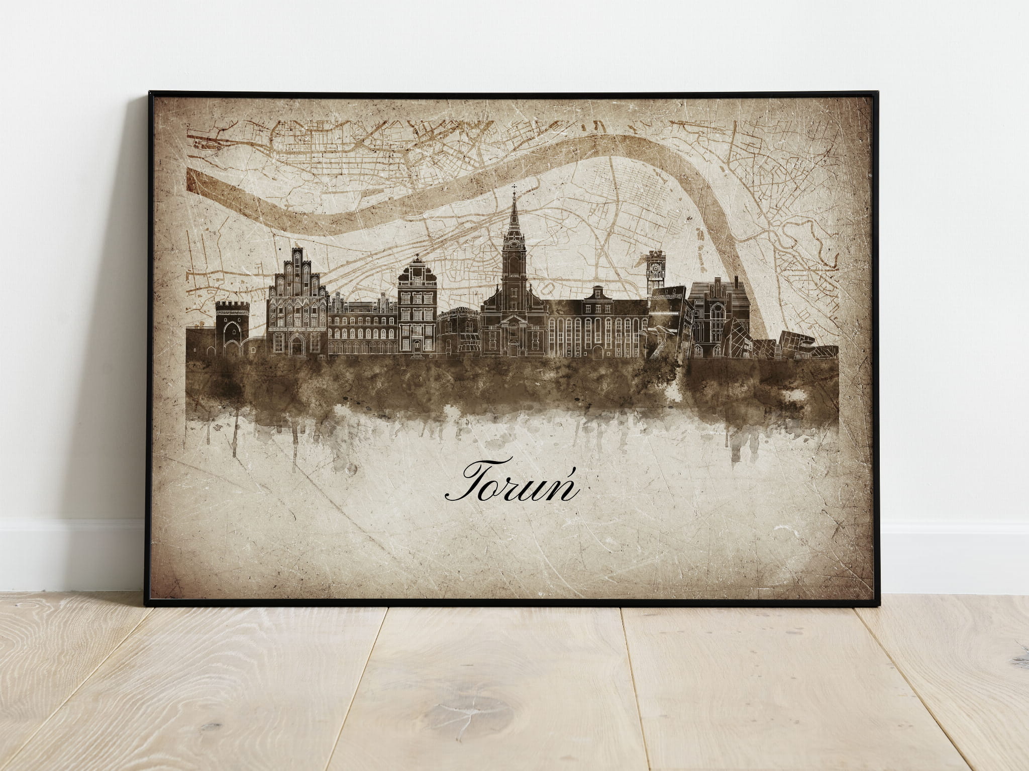 Plakat Skylines Toruń w stylu Vintage- Poziomy