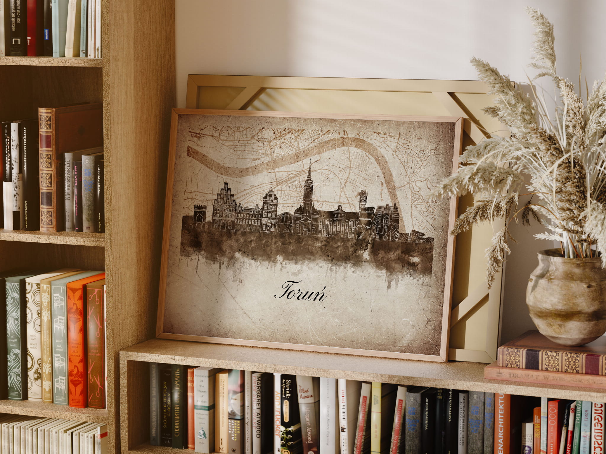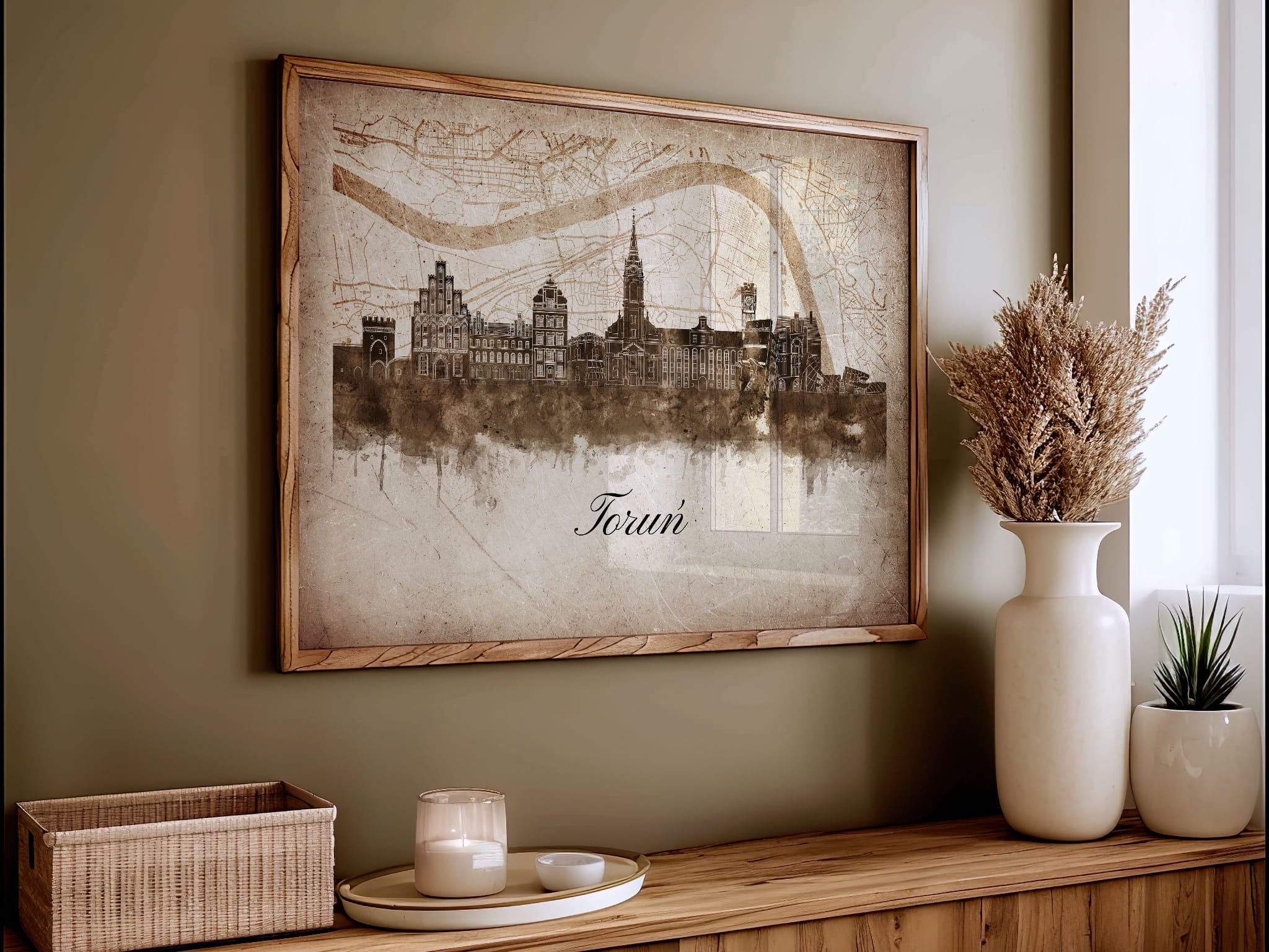 Plakaty skyline w stylu vintage to nowoczesne dzieła sztuki, które nawiązują do estetyki minionych dekad. Przedstawiają miejskie krajobrazy w retro kolorystyce, z wyblakłymi barwami i z delikatną patyną czasu. Kontury są często zmiękczone, a szczegóły budynków lekko stylizowane, co dodaje im nostalgicznego uroku. Tła plakatów utrzymane są w odcieniach przypominających stary papier, z subtelnymi teksturami i ciepłymi, przygaszonymi tonami. Całość tworzy elegancki i przytulny klimat, idealny do wnętrz, które łączą nowoczesność z klasycznym wdziękiem.