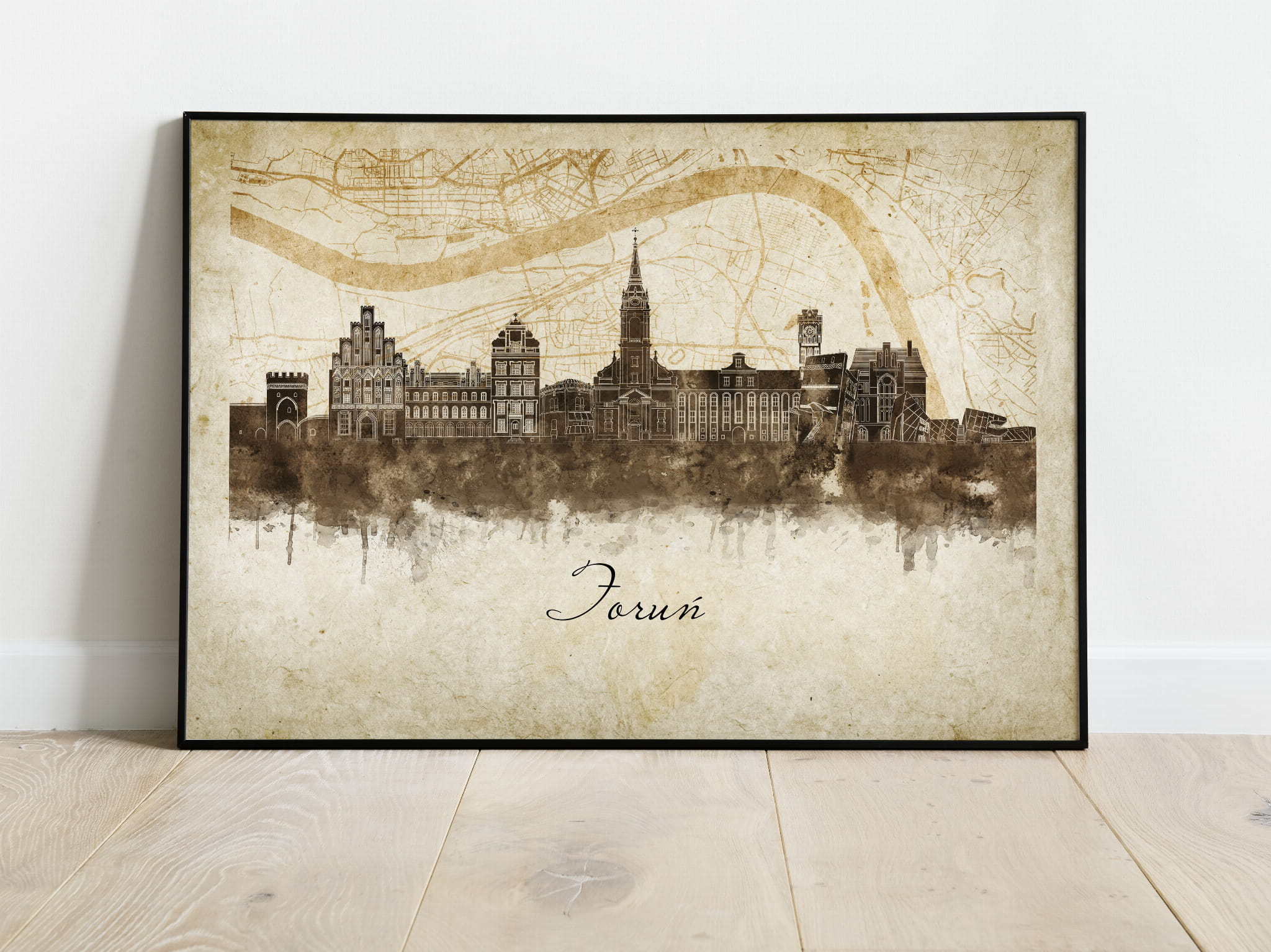 Plakat Skylines Toruń w stylu Vintage- Poziomy
