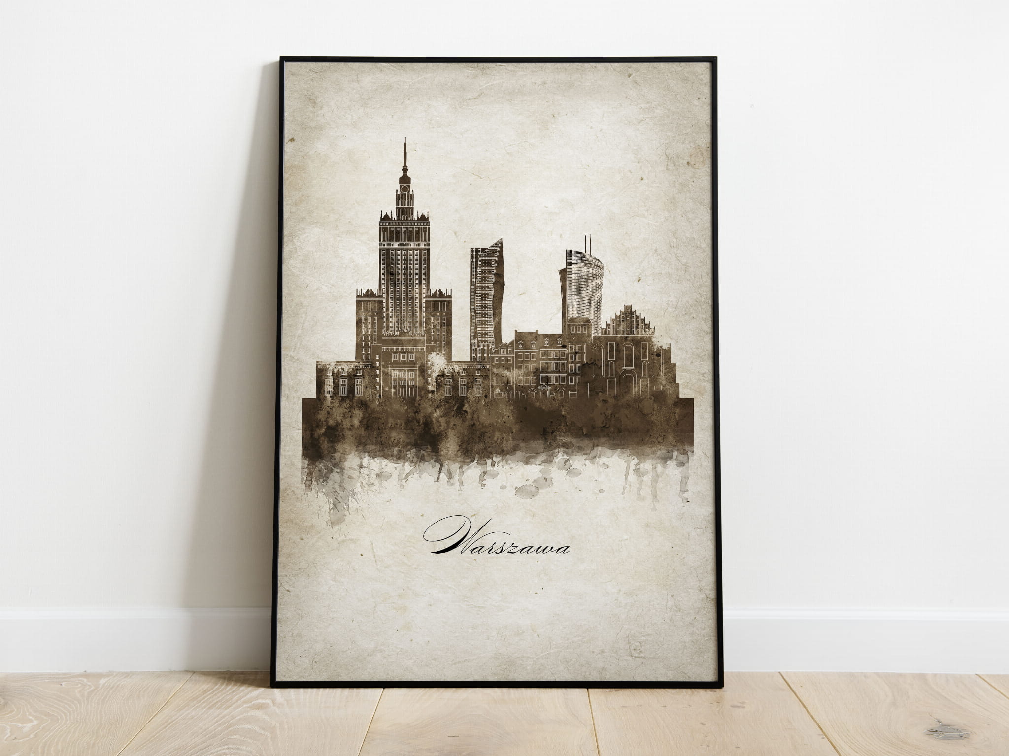 Plakat Skylines Warszawa w stylu Vintage- Pionowy, Styl akwarelowy