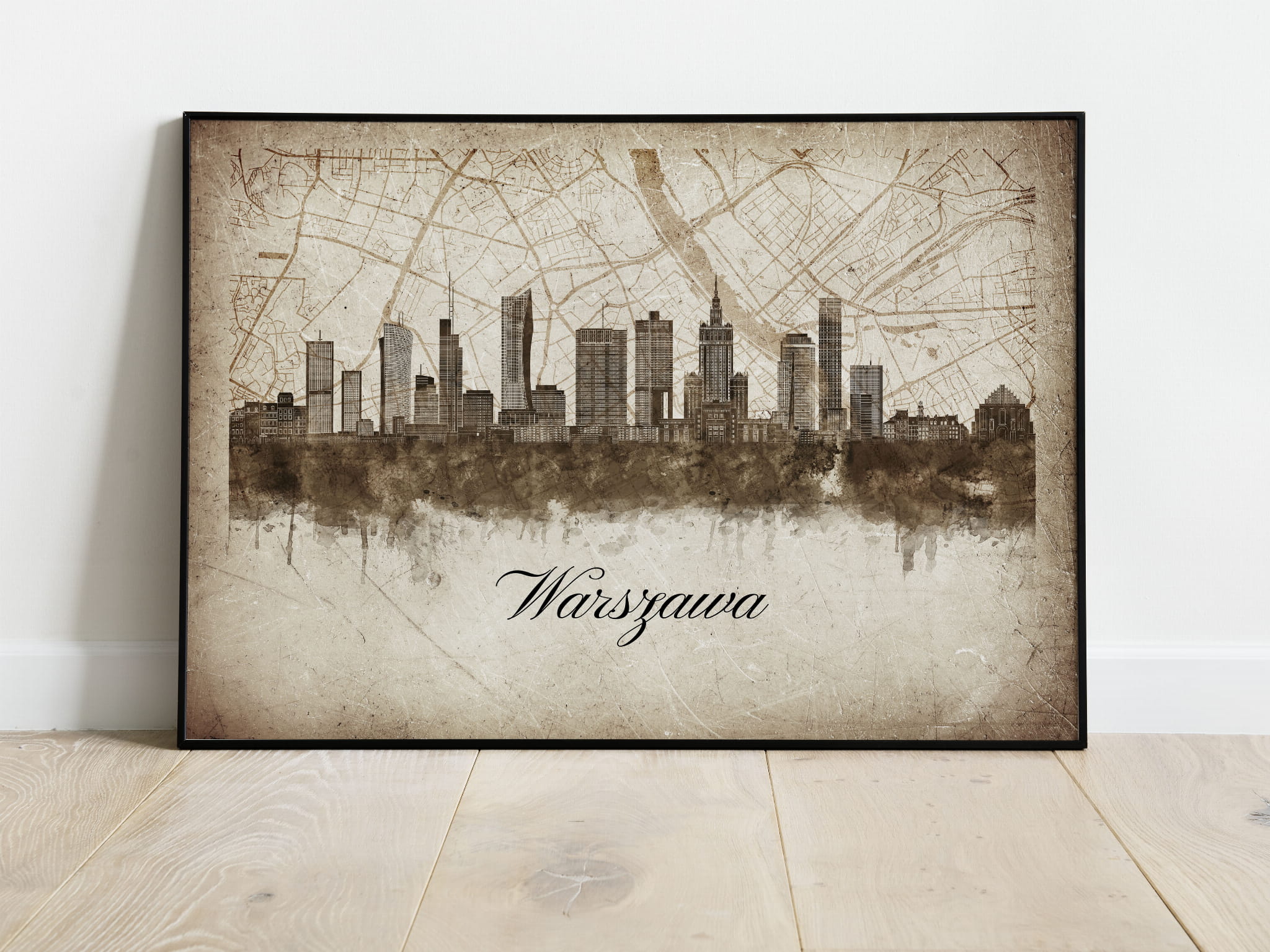 Plakaty skyline w stylu vintage to nowoczesne dzieła sztuki, które nawiązują do estetyki minionych dekad. Przedstawiają miejskie krajobrazy w retro kolorystyce, z wyblakłymi barwami i z delikatną patyną czasu. Kontury są często zmiękczone, a szczegóły budynków lekko stylizowane, co dodaje im nostalgicznego uroku. Tła plakatów utrzymane są w odcieniach przypominających stary papier, z subtelnymi teksturami i ciepłymi, przygaszonymi tonami. Całość tworzy elegancki i przytulny klimat, idealny do wnętrz, które łączą nowoczesność z klasycznym wdziękiem.