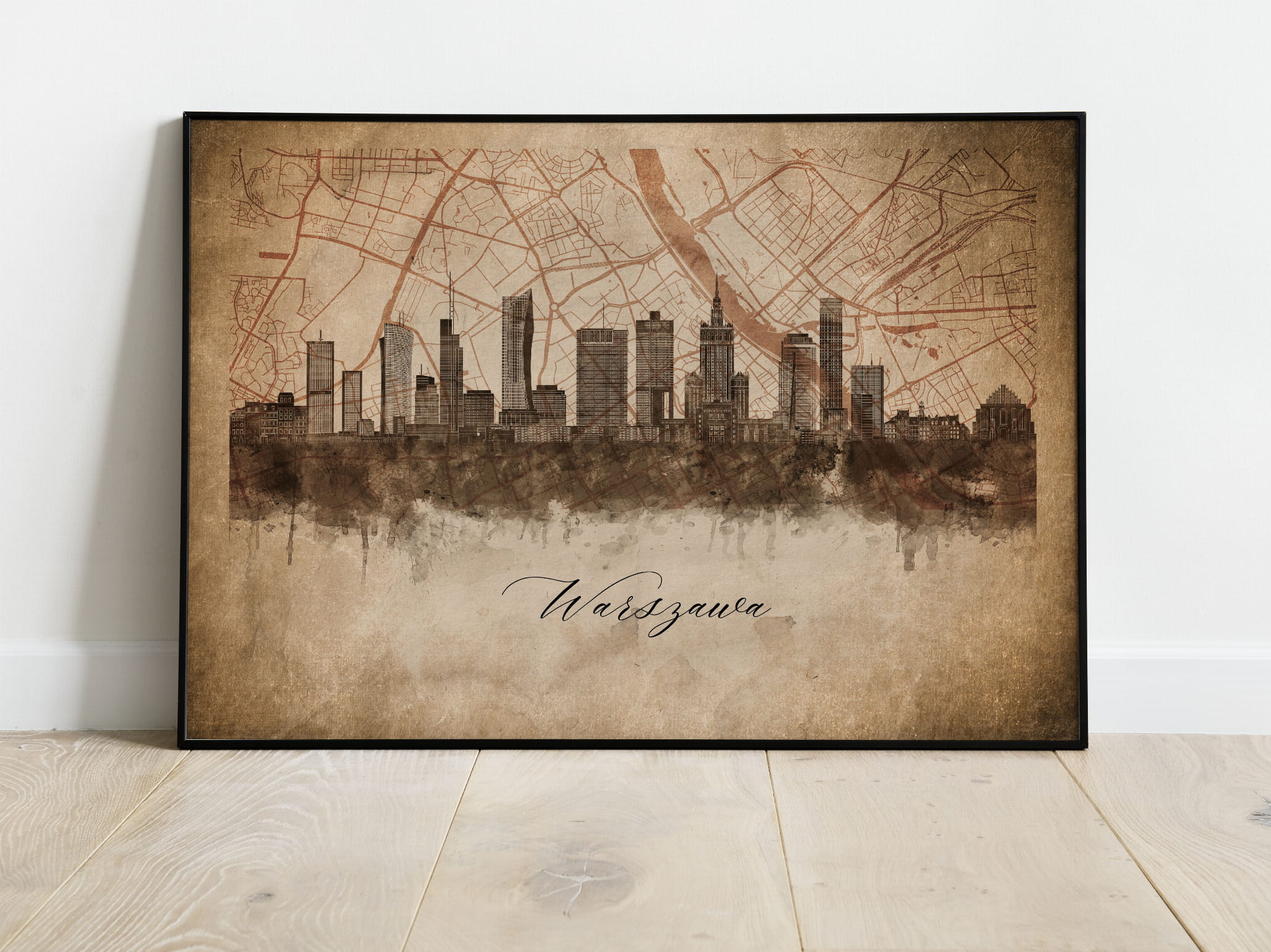 Plakaty skyline w stylu vintage to nowoczesne dzieła sztuki, które nawiązują do estetyki minionych dekad. Przedstawiają miejskie krajobrazy w retro kolorystyce, z wyblakłymi barwami i z delikatną patyną czasu. Kontury są często zmiękczone, a szczegóły budynków lekko stylizowane, co dodaje im nostalgicznego uroku. Tła plakatów utrzymane są w odcieniach przypominających stary papier, z subtelnymi teksturami i ciepłymi, przygaszonymi tonami. Całość tworzy elegancki i przytulny klimat, idealny do wnętrz, które łączą nowoczesność z klasycznym wdziękiem.