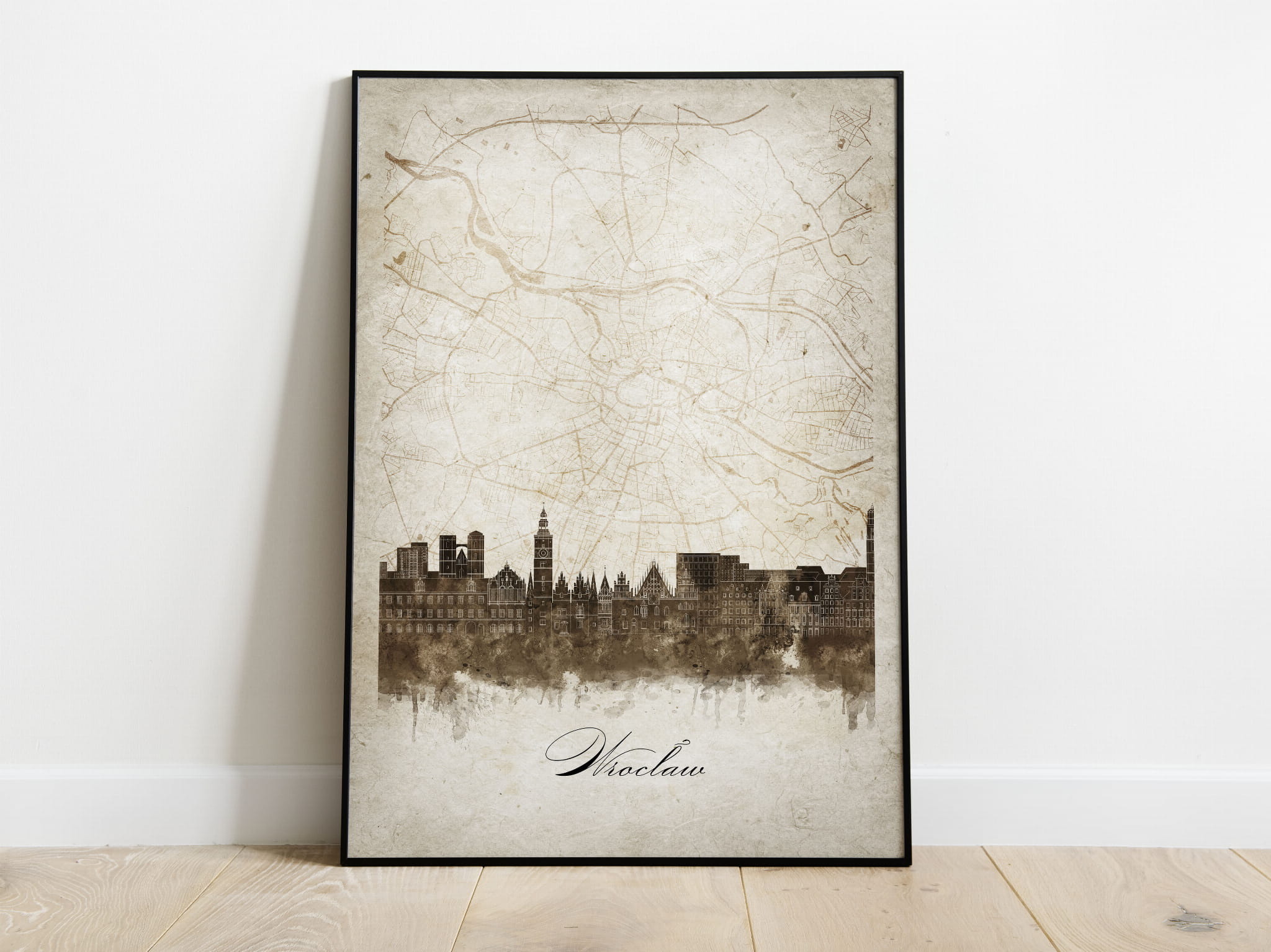 Plakat Skylines Wrocław w stylu Vintage- Pionowy, Styl akwarelowy