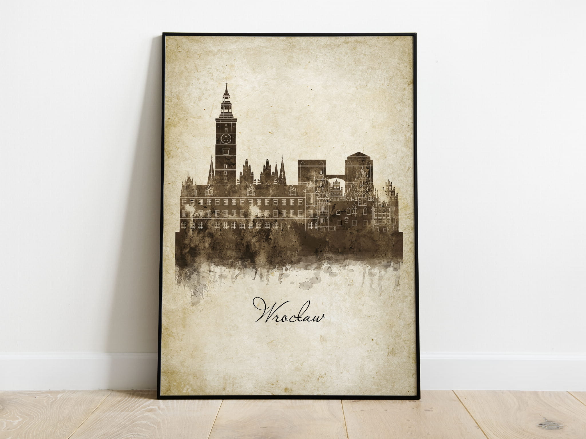 Plakat Skylines Wrocław w stylu Vintage- Pionowy, Styl akwarelowy
