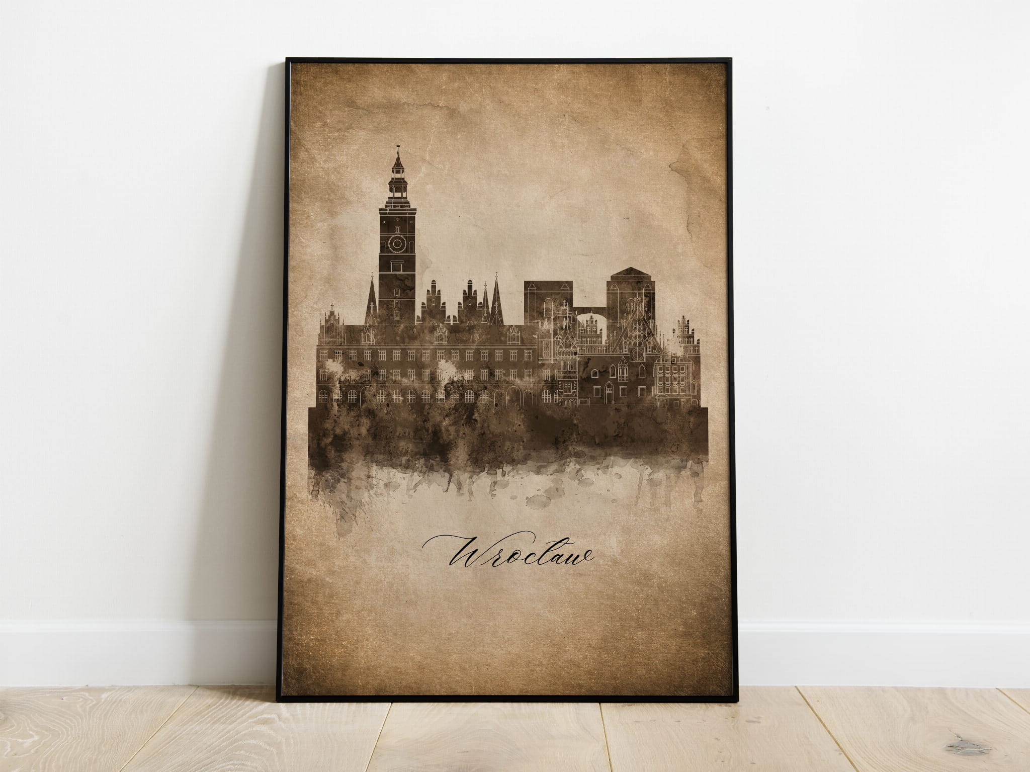 Plakat Skylines Wrocław w stylu Vintage- Pionowy, Styl akwarelowy