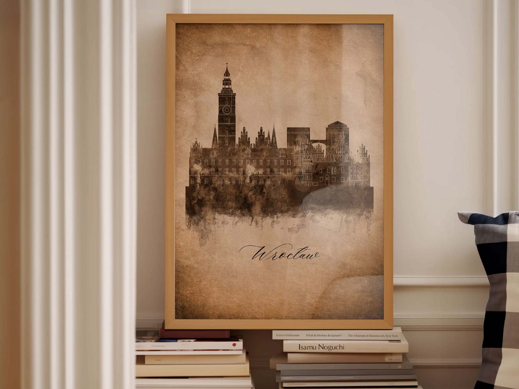 Plakaty skyline w stylu vintage to nowoczesne dzieła sztuki, które nawiązują do estetyki minionych dekad. Przedstawiają miejskie krajobrazy w retro kolorystyce, z wyblakłymi barwami i z delikatną patyną czasu. Kontury są często zmiękczone, a szczegóły budynków lekko stylizowane, co dodaje im nostalgicznego uroku. Tła plakatów utrzymane są w odcieniach przypominających stary papier, z subtelnymi teksturami i ciepłymi, przygaszonymi tonami. Całość tworzy elegancki i przytulny klimat, idealny do wnętrz, które łączą nowoczesność z klasycznym wdziękiem.