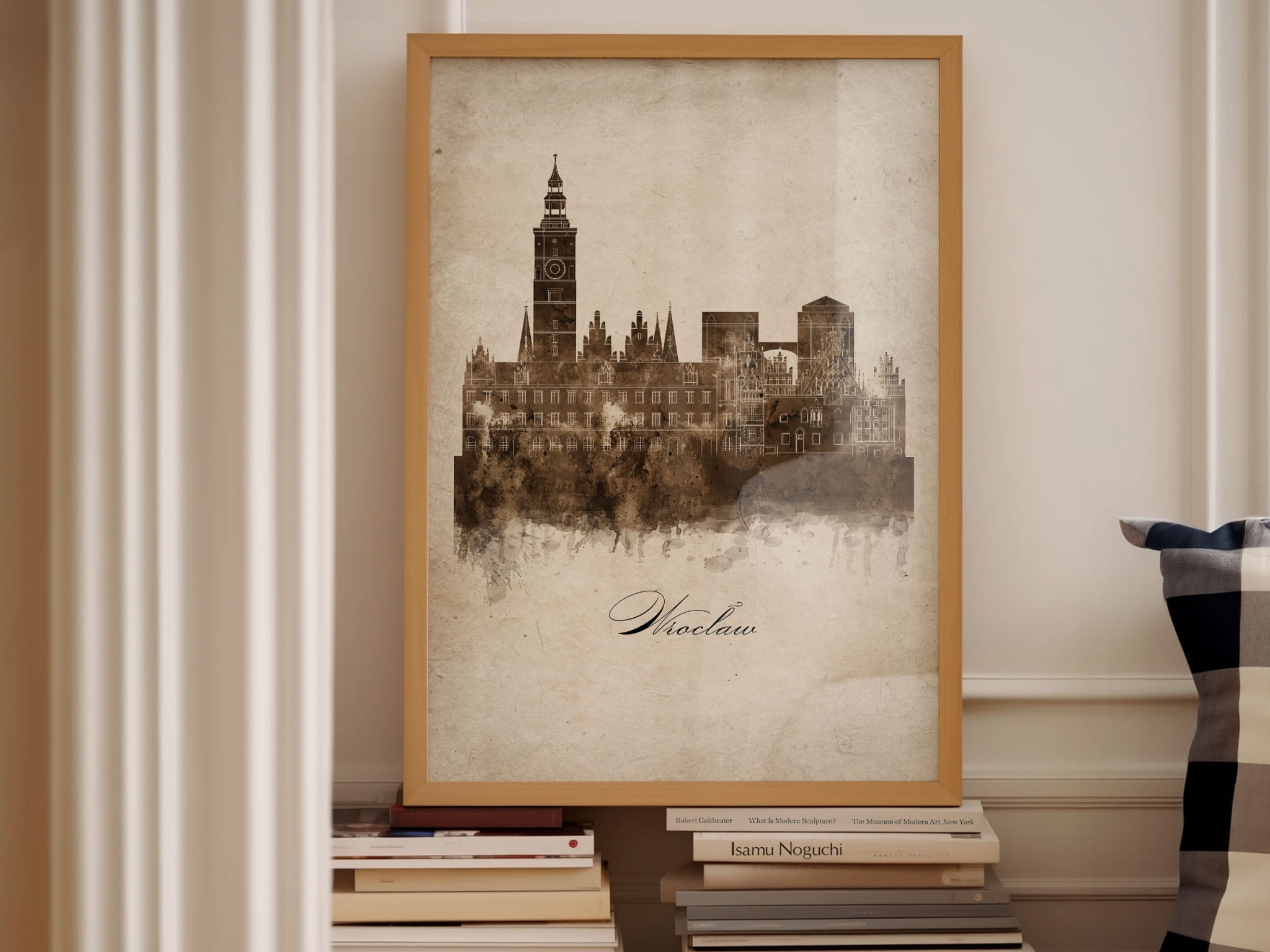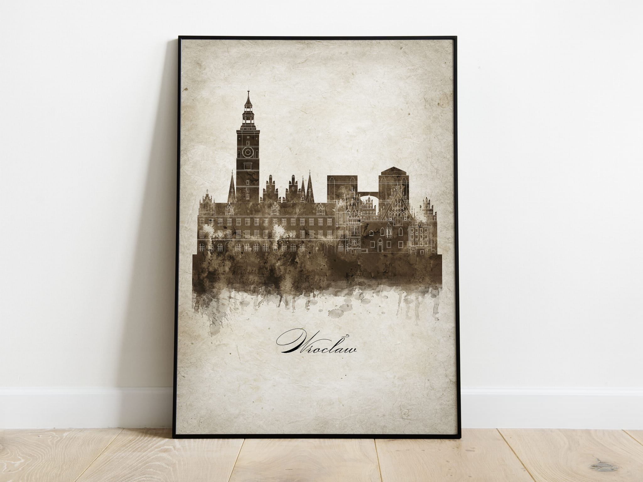 Plakat Skylines Wrocław w stylu Vintage- Pionowy, Styl akwarelowy