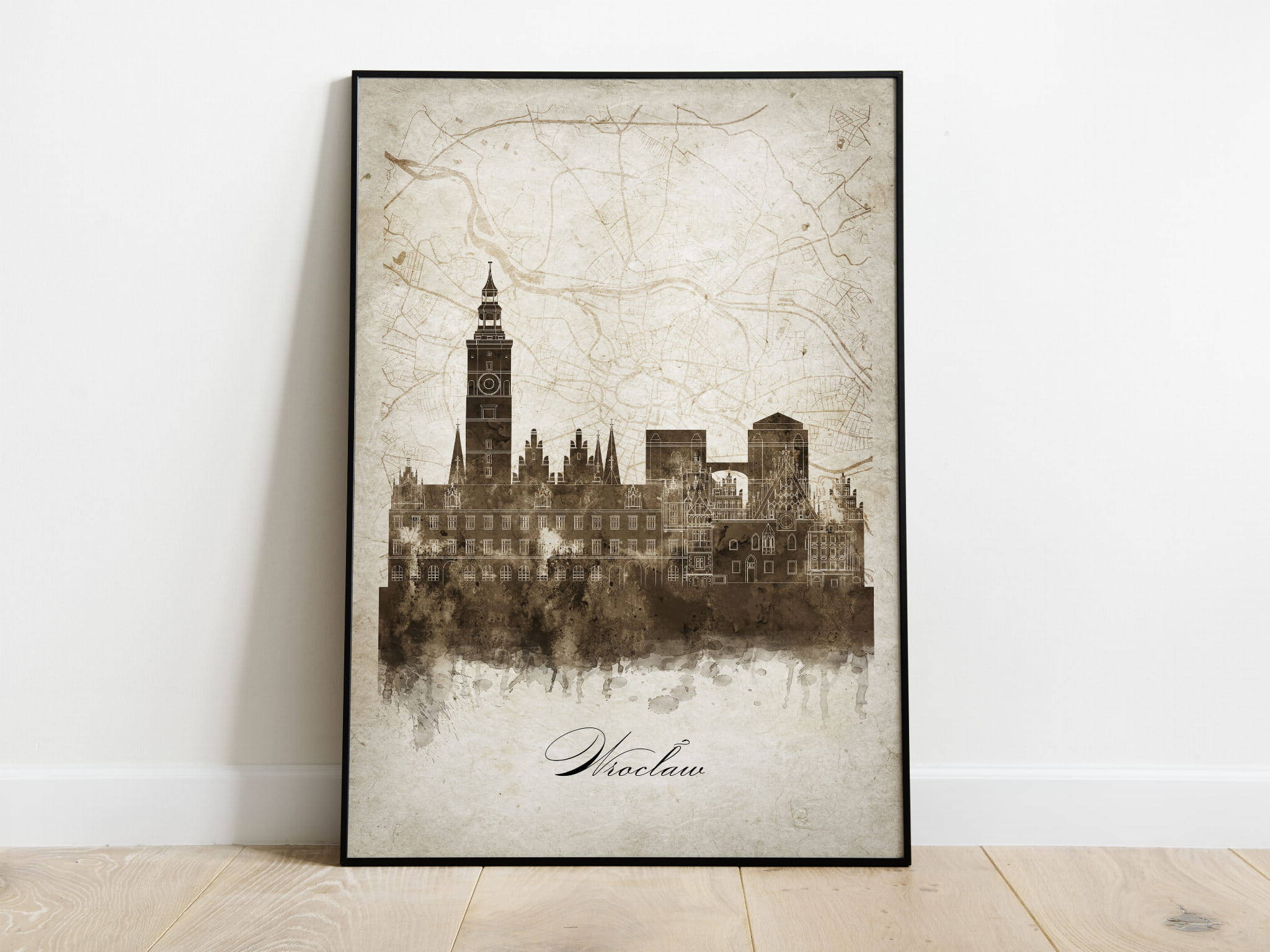 Plakat Skylines Wrocław w stylu Vintage- Pionowy, Styl akwarelowy
