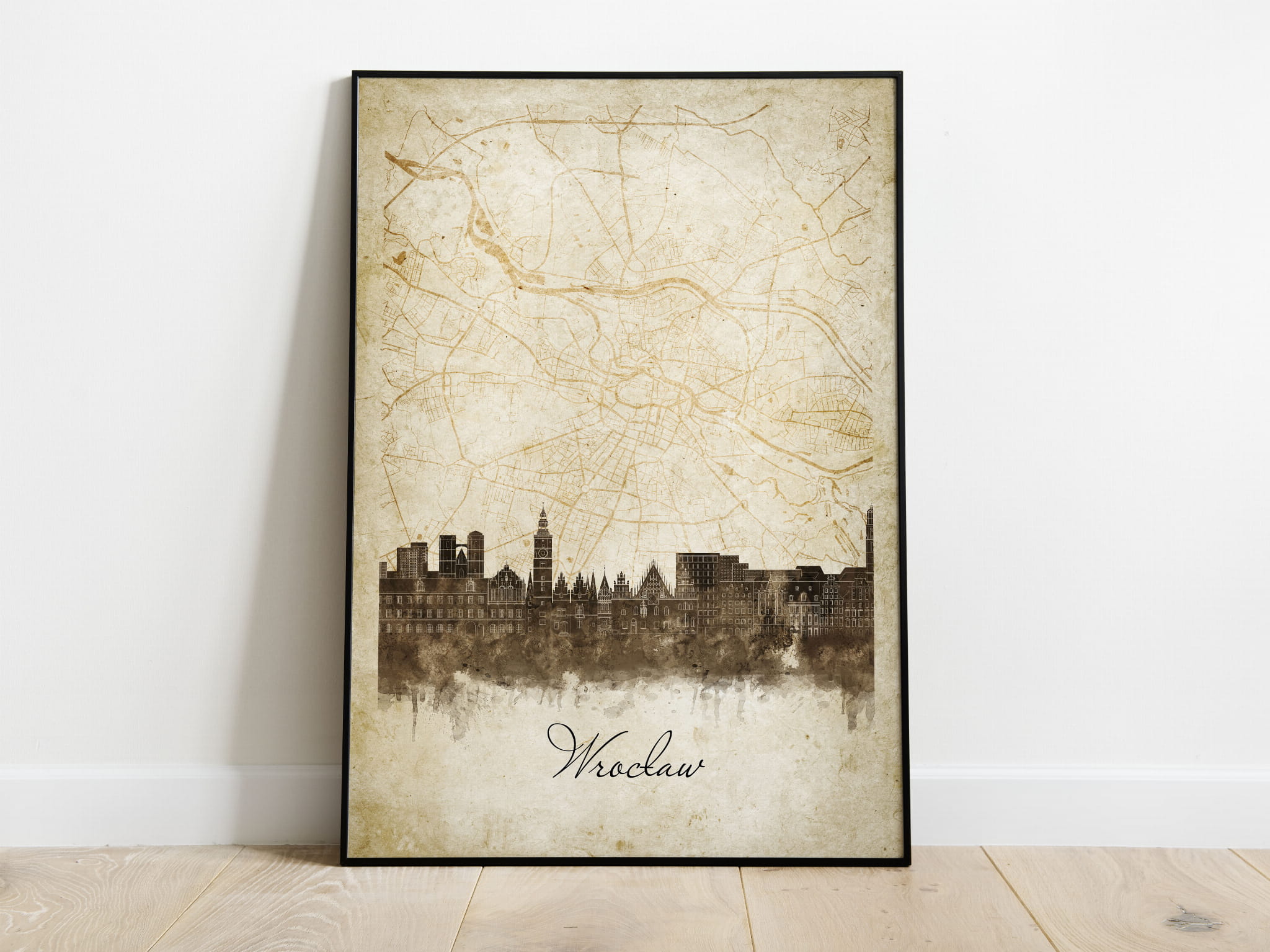 Plakat Skylines Wrocław w stylu Vintage- Pionowy