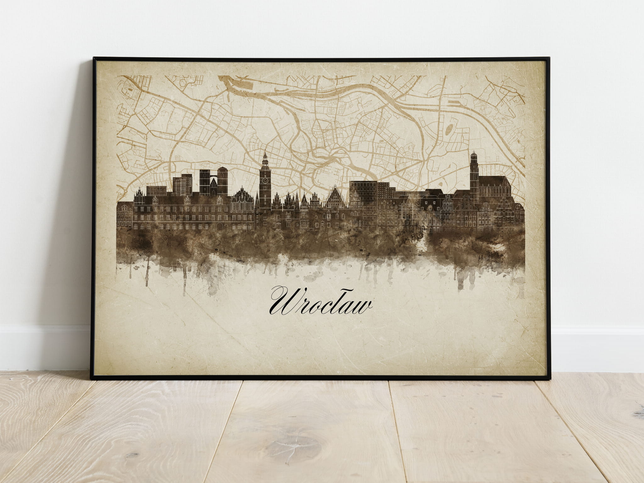 Plakat Skylines Wrocław w stylu Vintage- Poziomy