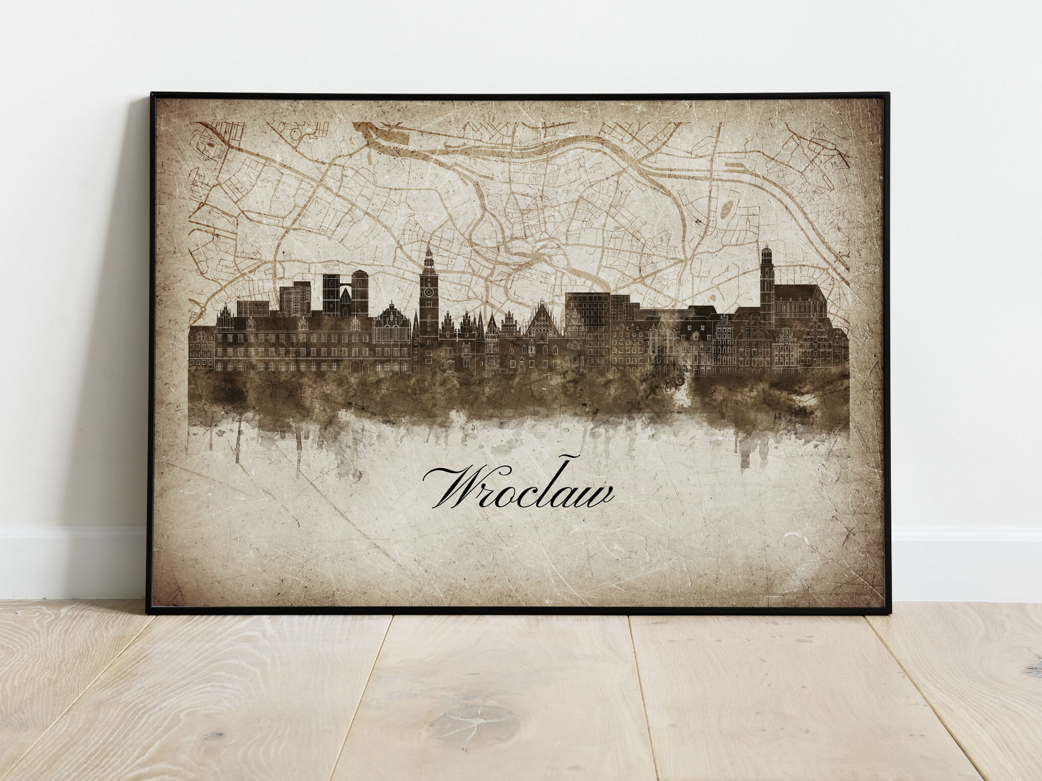Plakat Skylines Wrocław w stylu Vintage- Poziomy