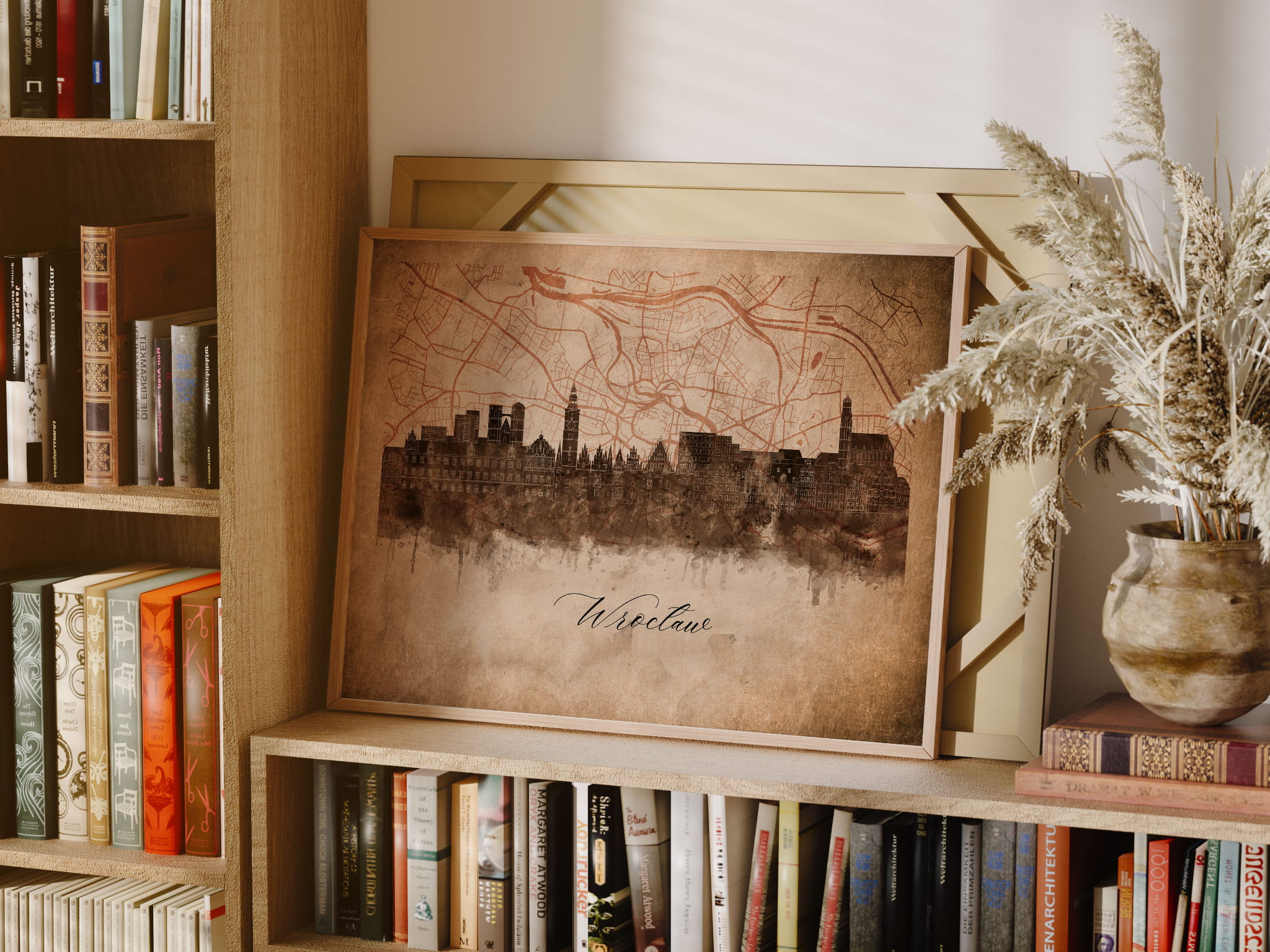 Plakaty skyline w stylu vintage to nowoczesne dzieła sztuki, które nawiązują do estetyki minionych dekad. Przedstawiają miejskie krajobrazy w retro kolorystyce, z wyblakłymi barwami i z delikatną patyną czasu. Kontury są często zmiękczone, a szczegóły budynków lekko stylizowane, co dodaje im nostalgicznego uroku. Tła plakatów utrzymane są w odcieniach przypominających stary papier, z subtelnymi teksturami i ciepłymi, przygaszonymi tonami. Całość tworzy elegancki i przytulny klimat, idealny do wnętrz, które łączą nowoczesność z klasycznym wdziękiem.