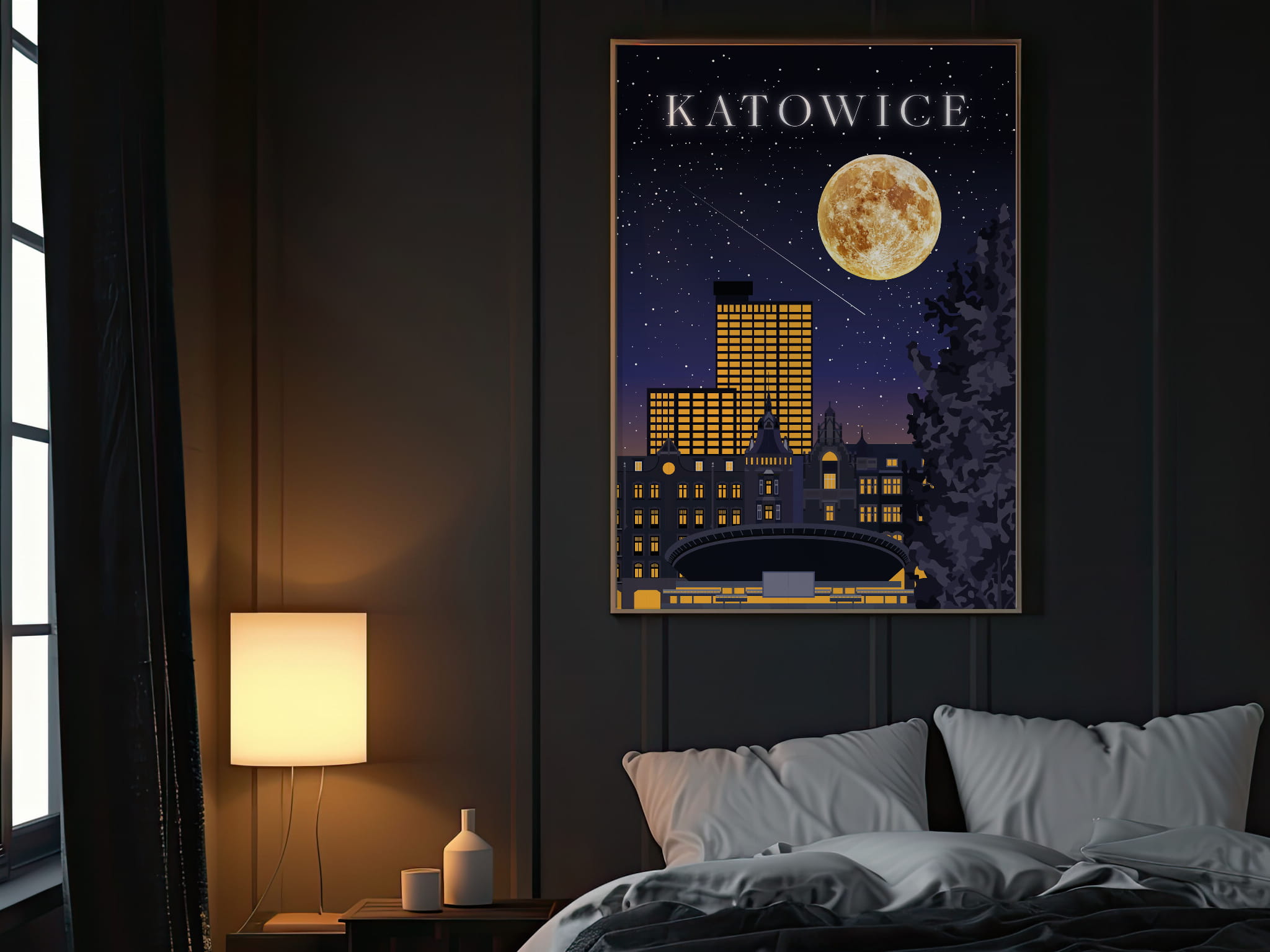 Plakat do salonu Skylines Katowice w Nocnym Stylu