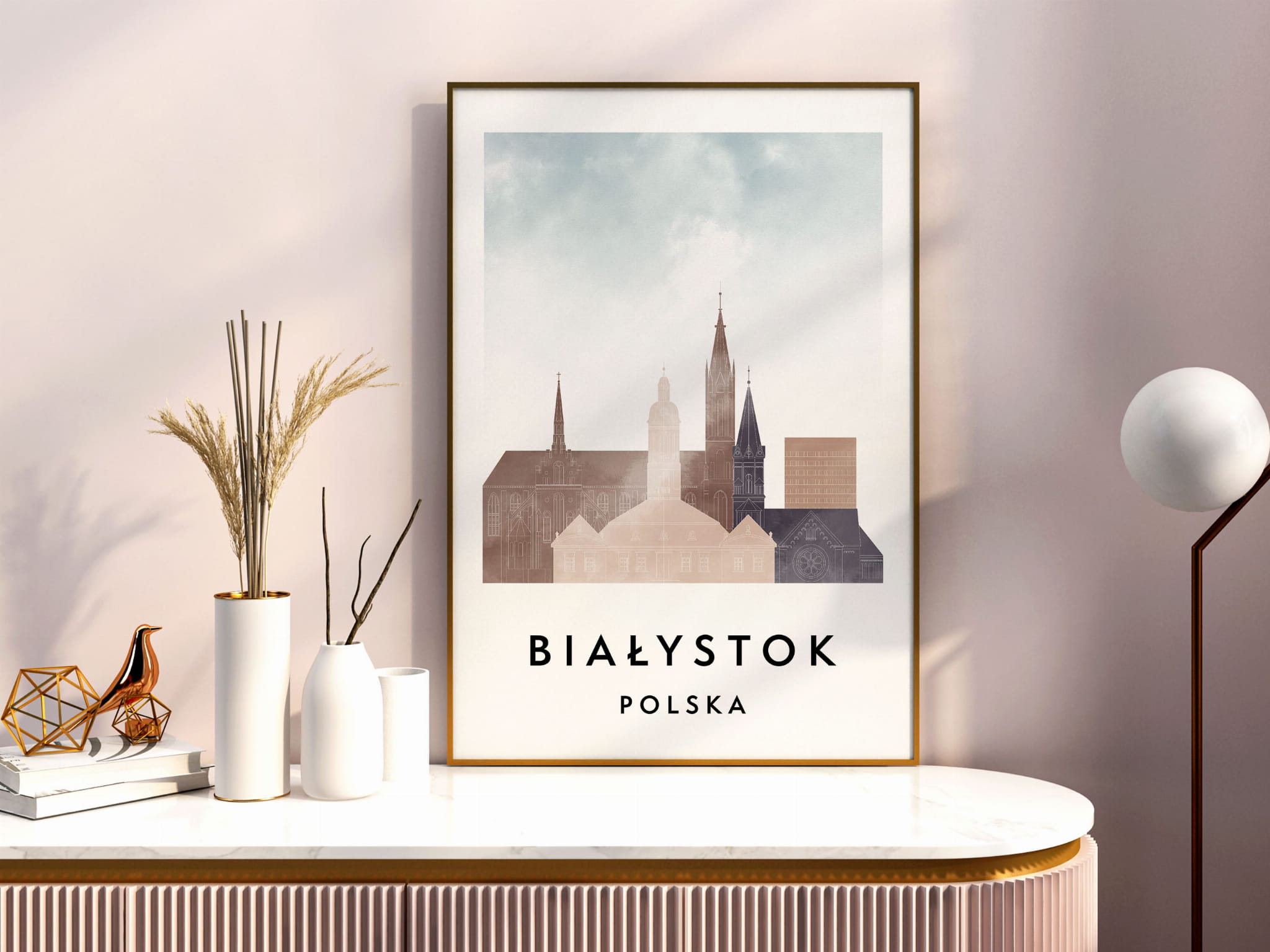 Plakat do salonu skylines Białystok stylu Watercolor/ Akwarelowym
