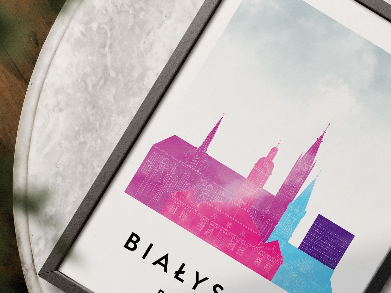 Plakat do salonu skylines Białystok stylu Watercolor/ Akwarelowym