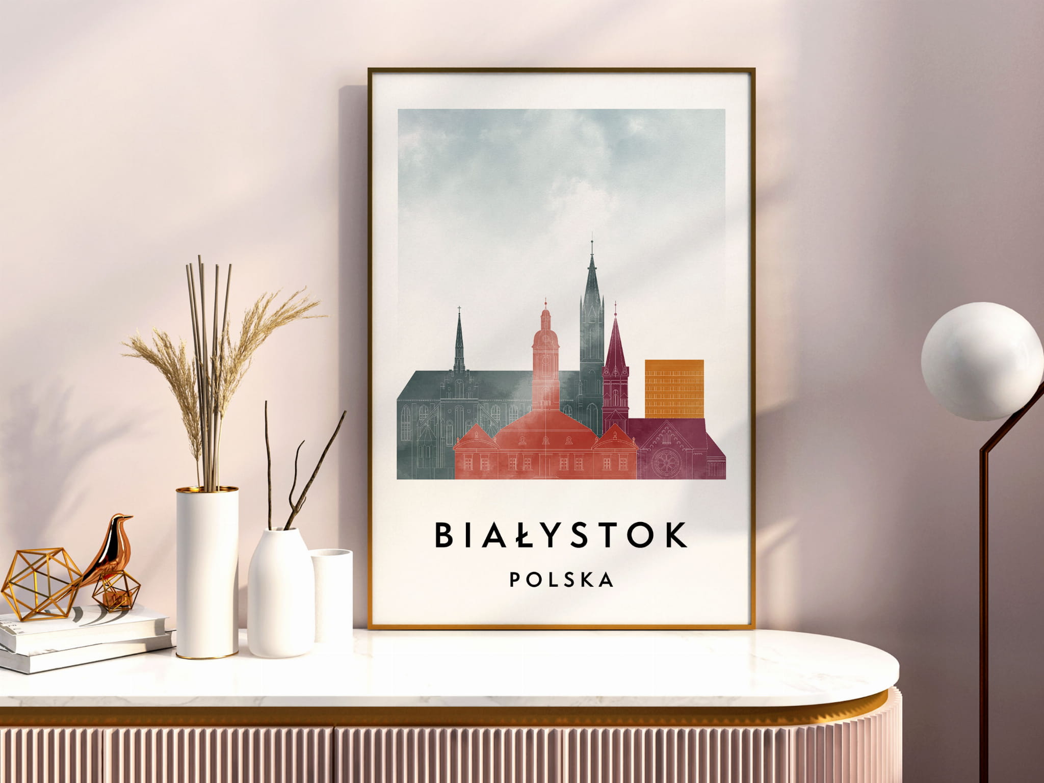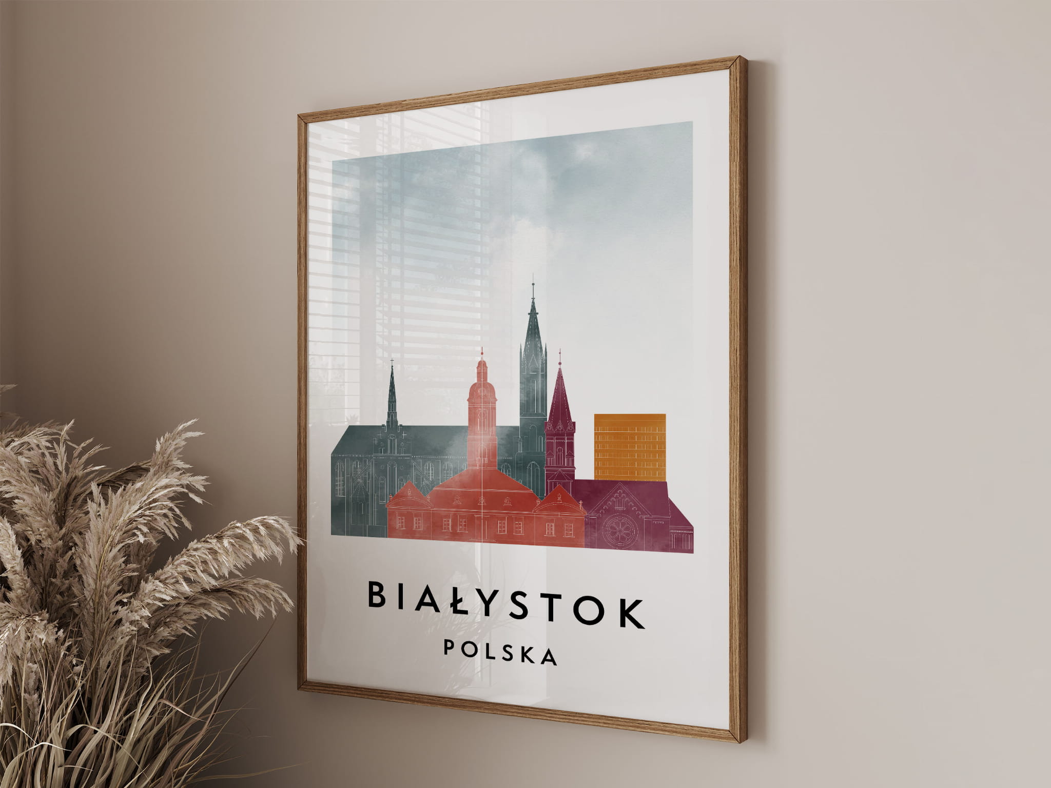 Plakat do salonu skylines Białystok stylu Watercolor/ Akwarelowym