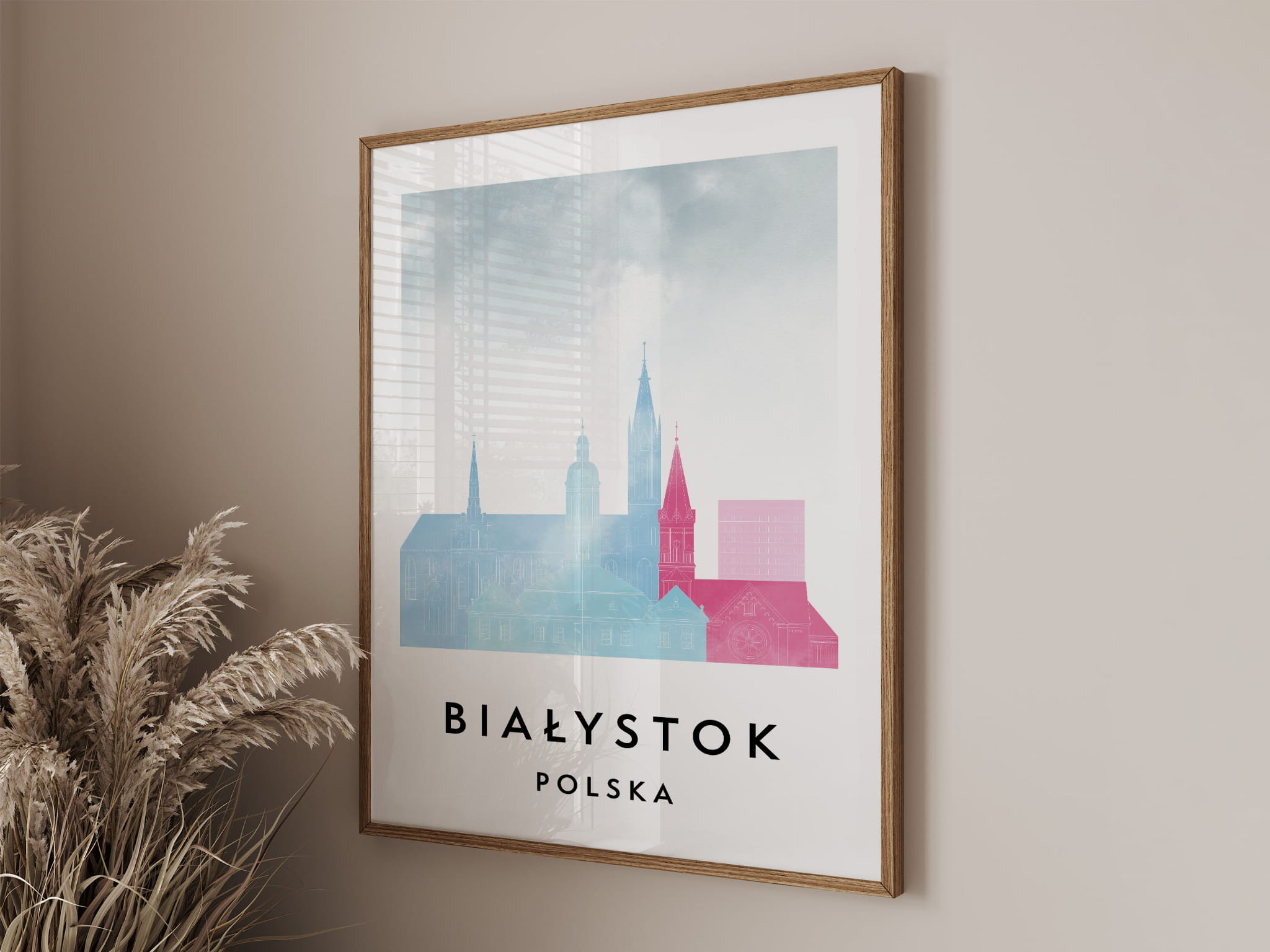 Plakat do salonu skylines Białystok stylu Watercolor/ Akwarelowym