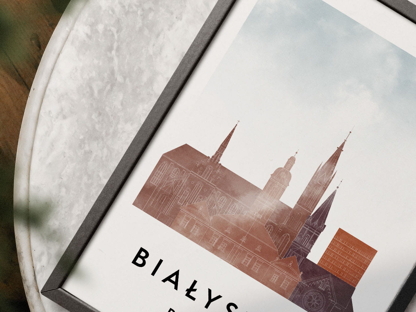 Plakat do salonu skylines Białystok stylu Watercolor/ Akwarelowym