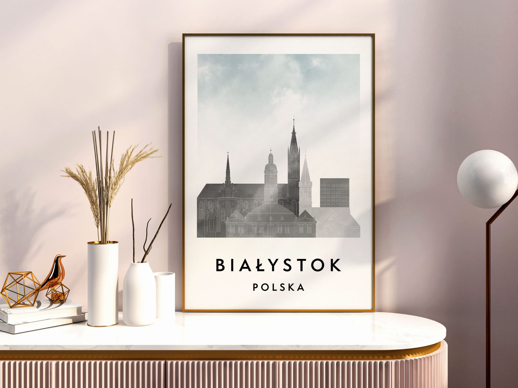 Plakat do salonu skylines Białystok stylu Watercolor/ Akwarelowym