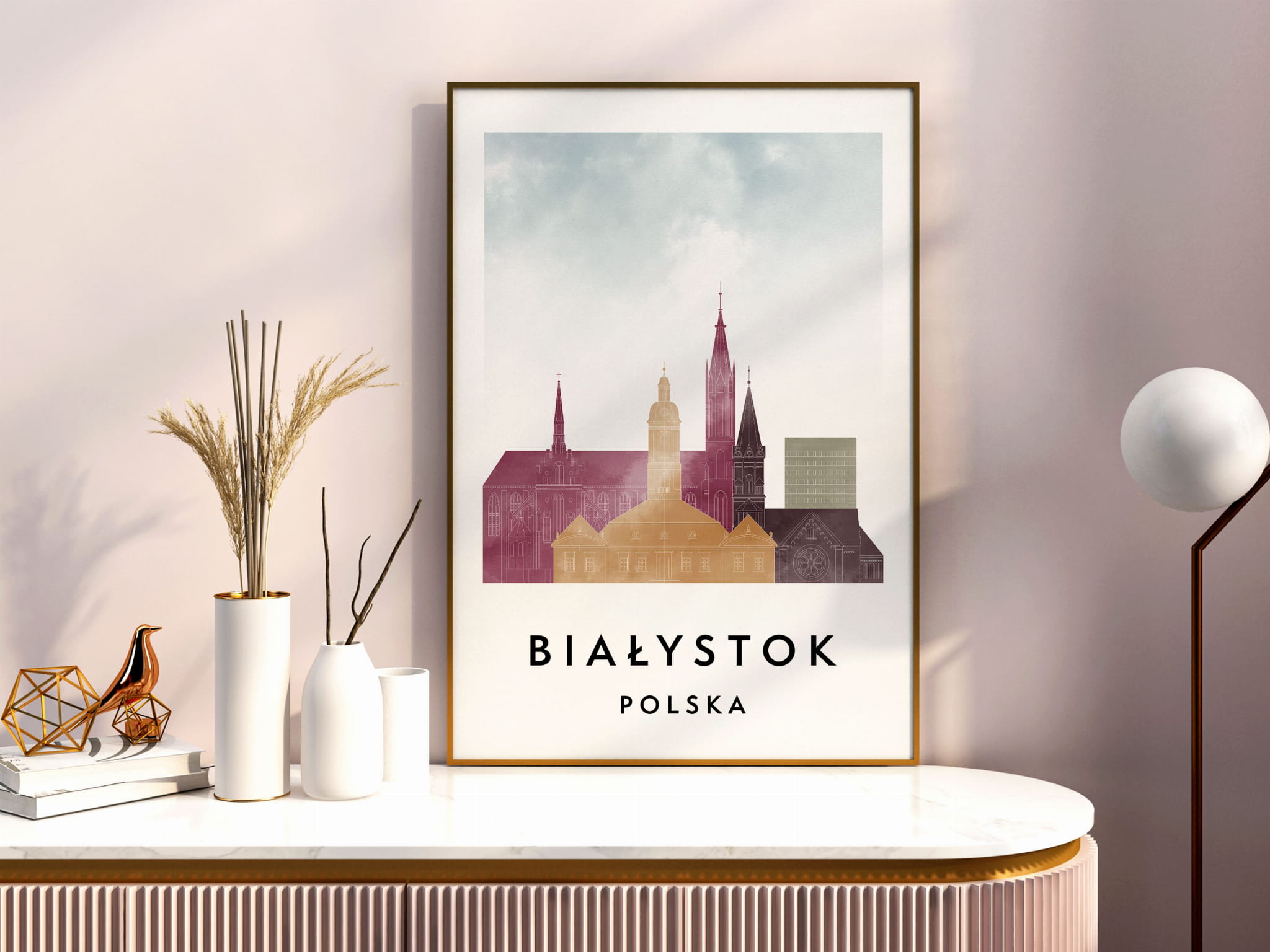 Plakat do salonu skylines Białystok stylu Watercolor/ Akwarelowym