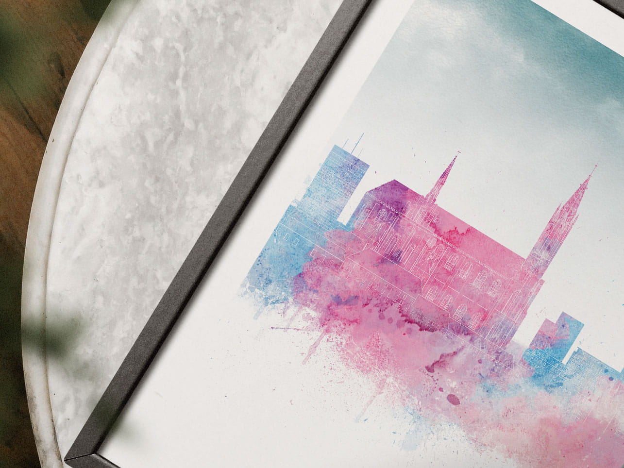 Plakat do salonu skylines Białystok w stylu Watercolor/ Akwarelowym