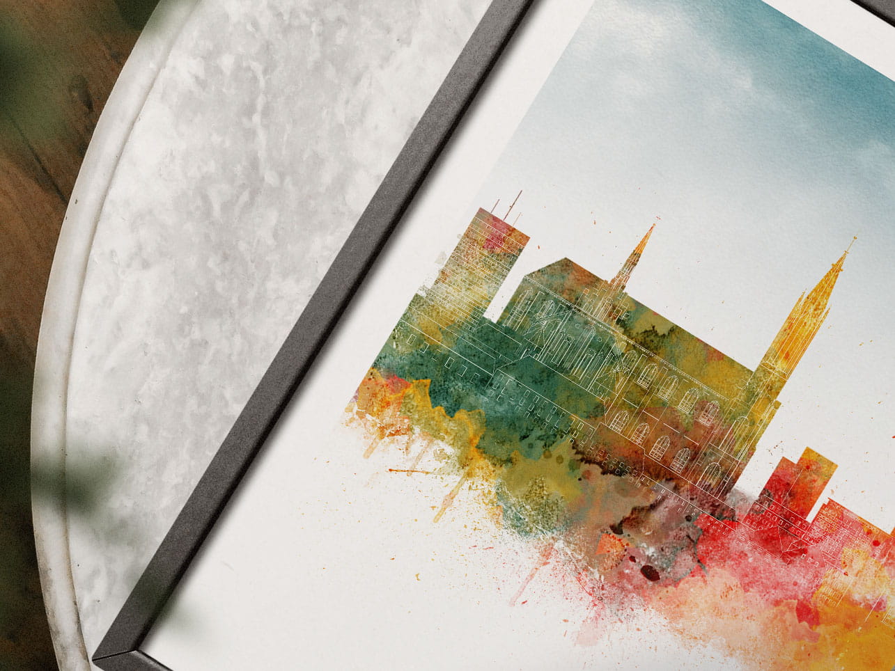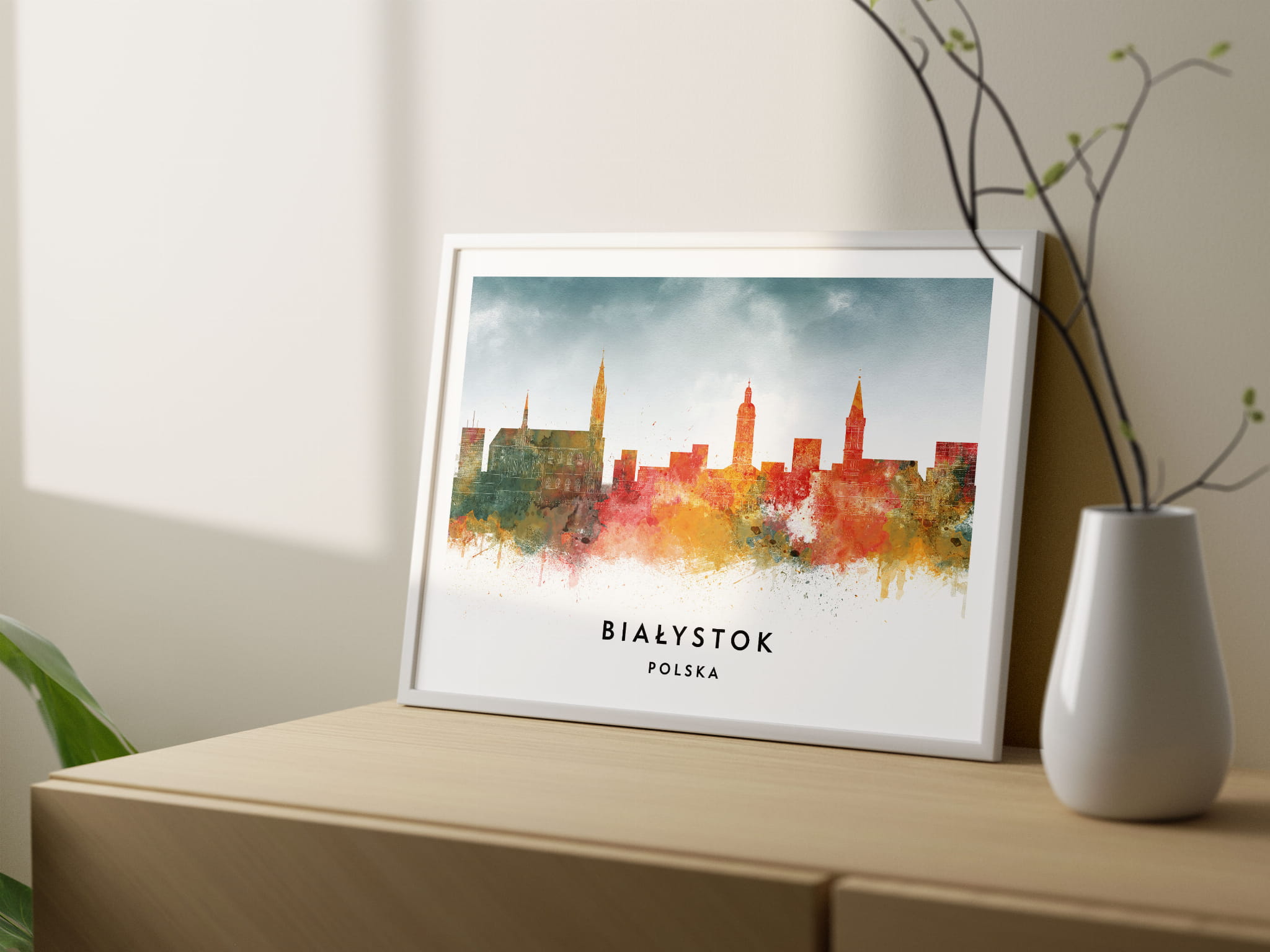 Plakat do salonu skylines Białystok w stylu Watercolor/ Akwarelowym