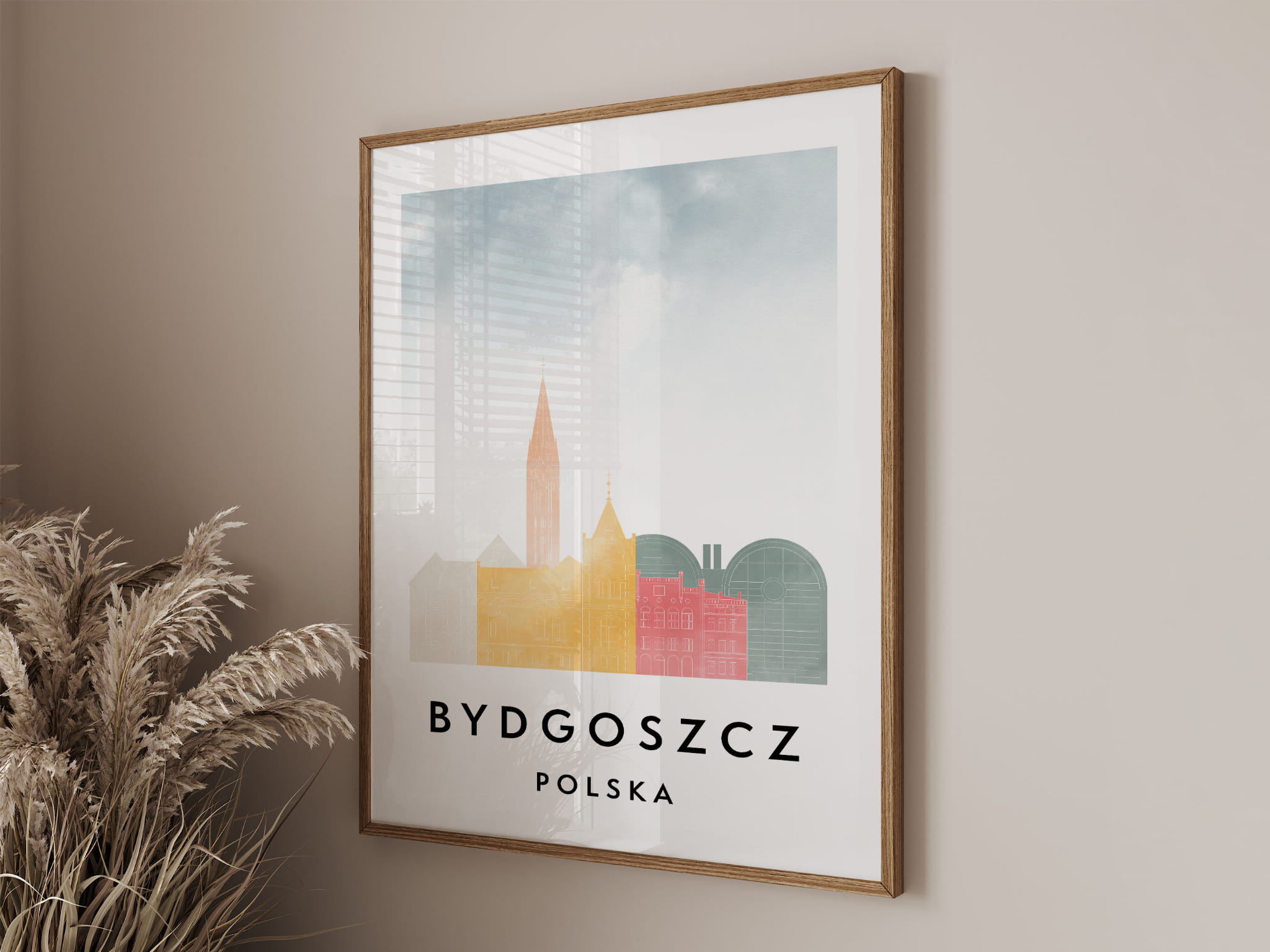 Plakat do salonu skylines Bydgoszcz stylu Watercolor/ Akwarelowym