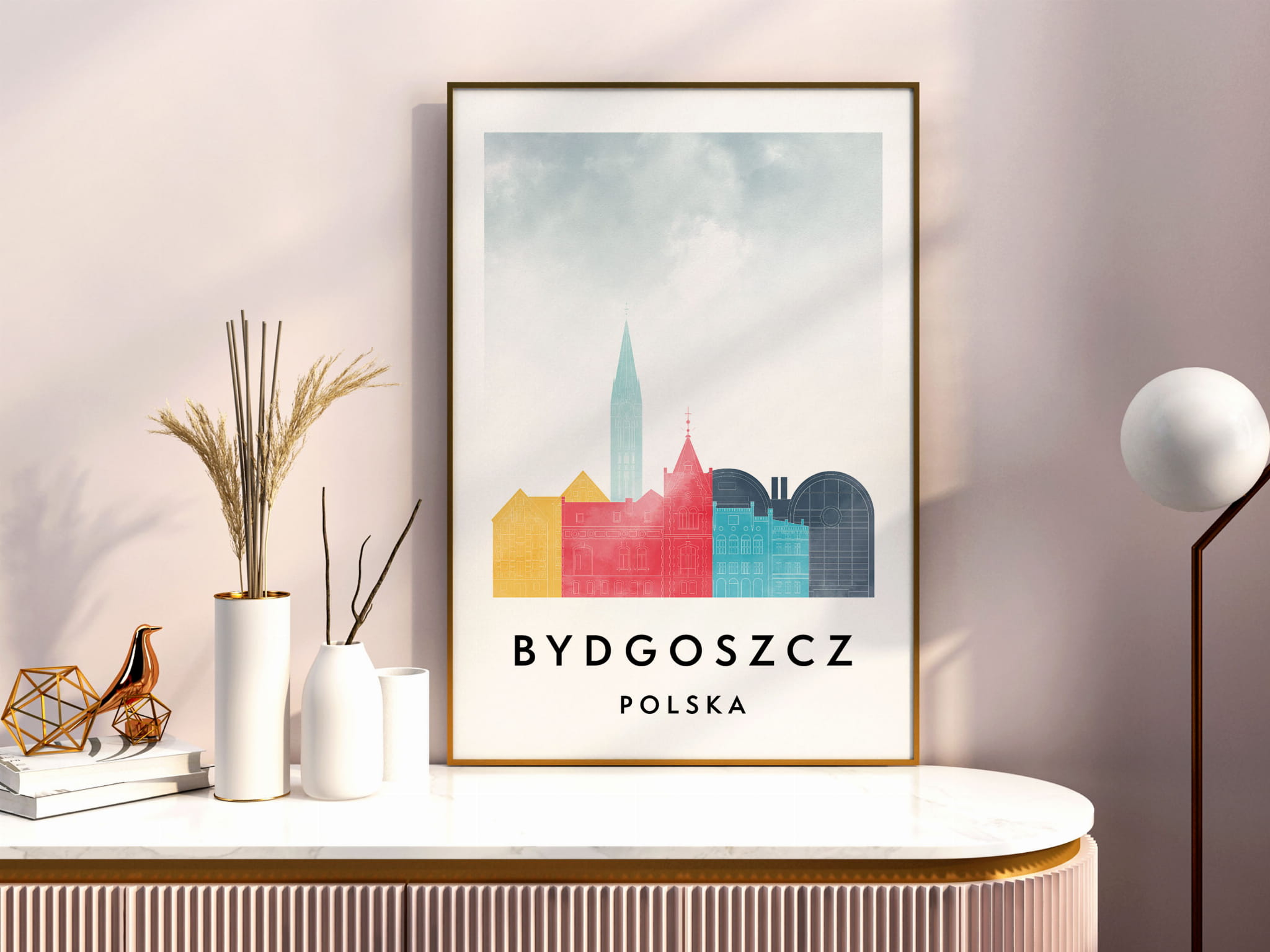 Plakat do salonu skylines Bydgoszcz stylu Watercolor/ Akwarelowym