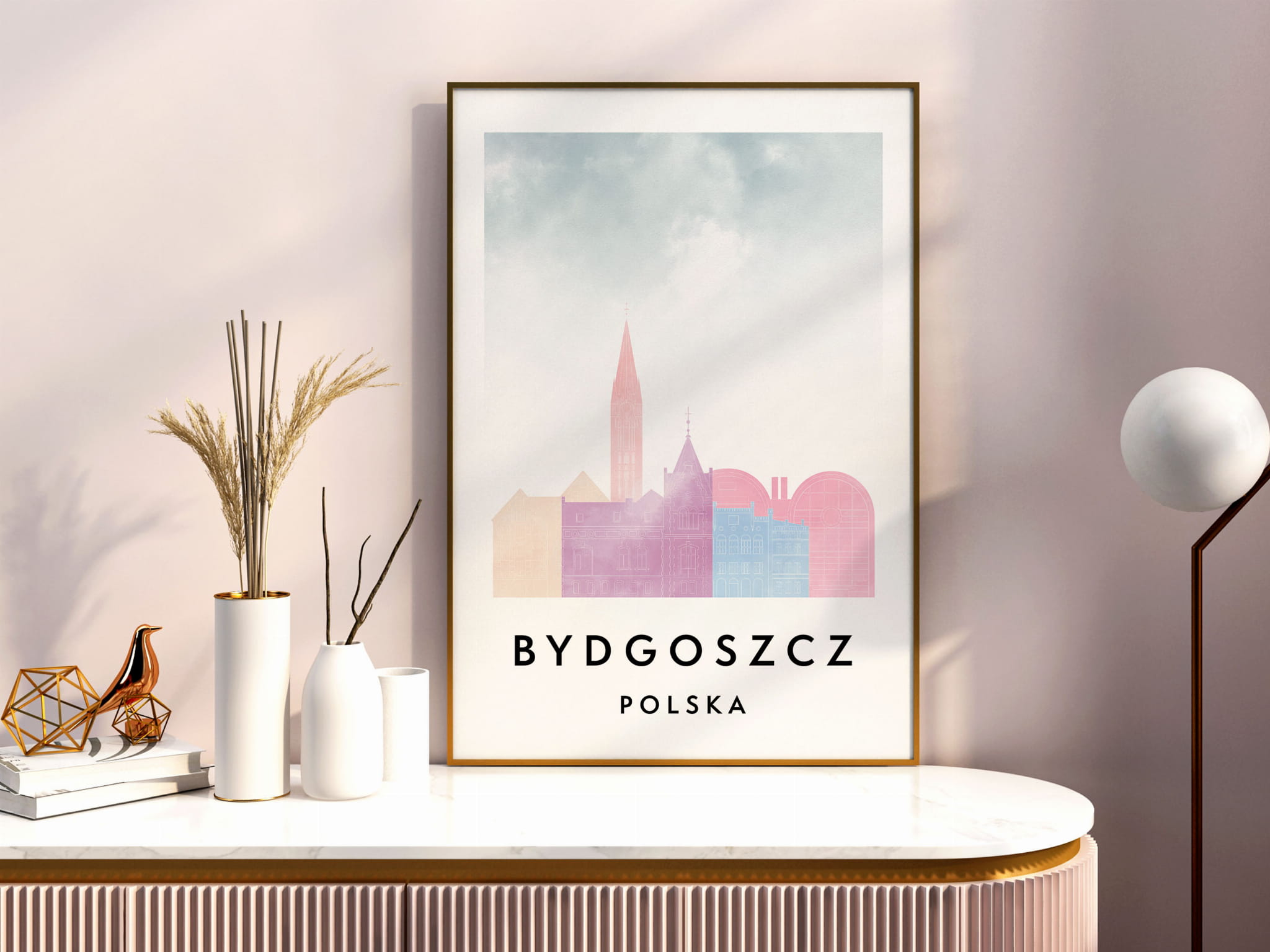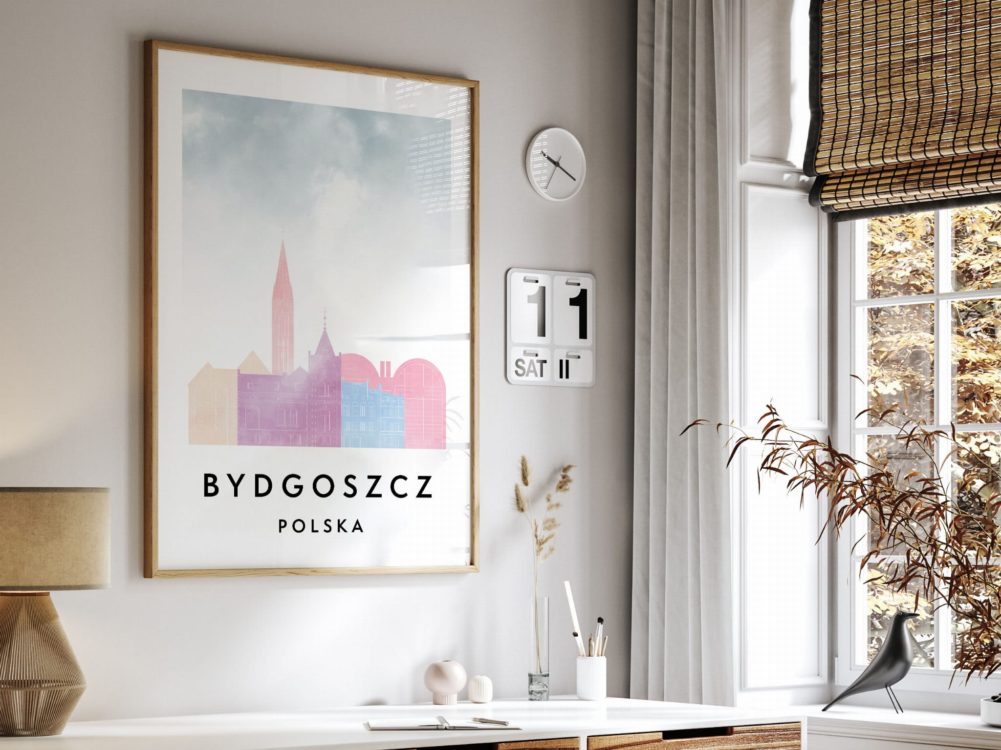 Plakat do salonu skylines Bydgoszcz stylu Watercolor/ Akwarelowym
