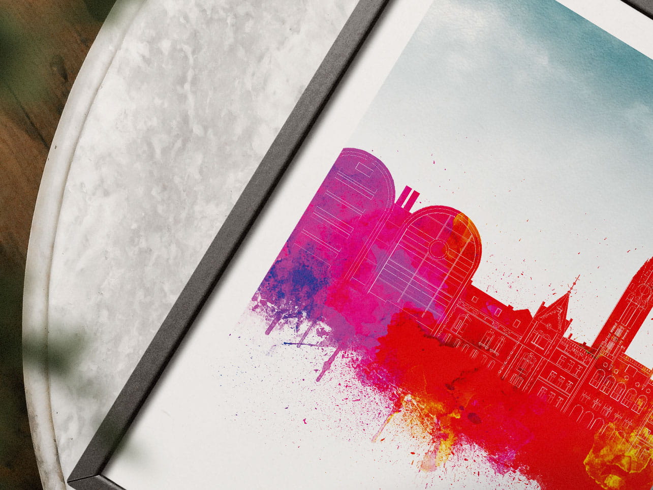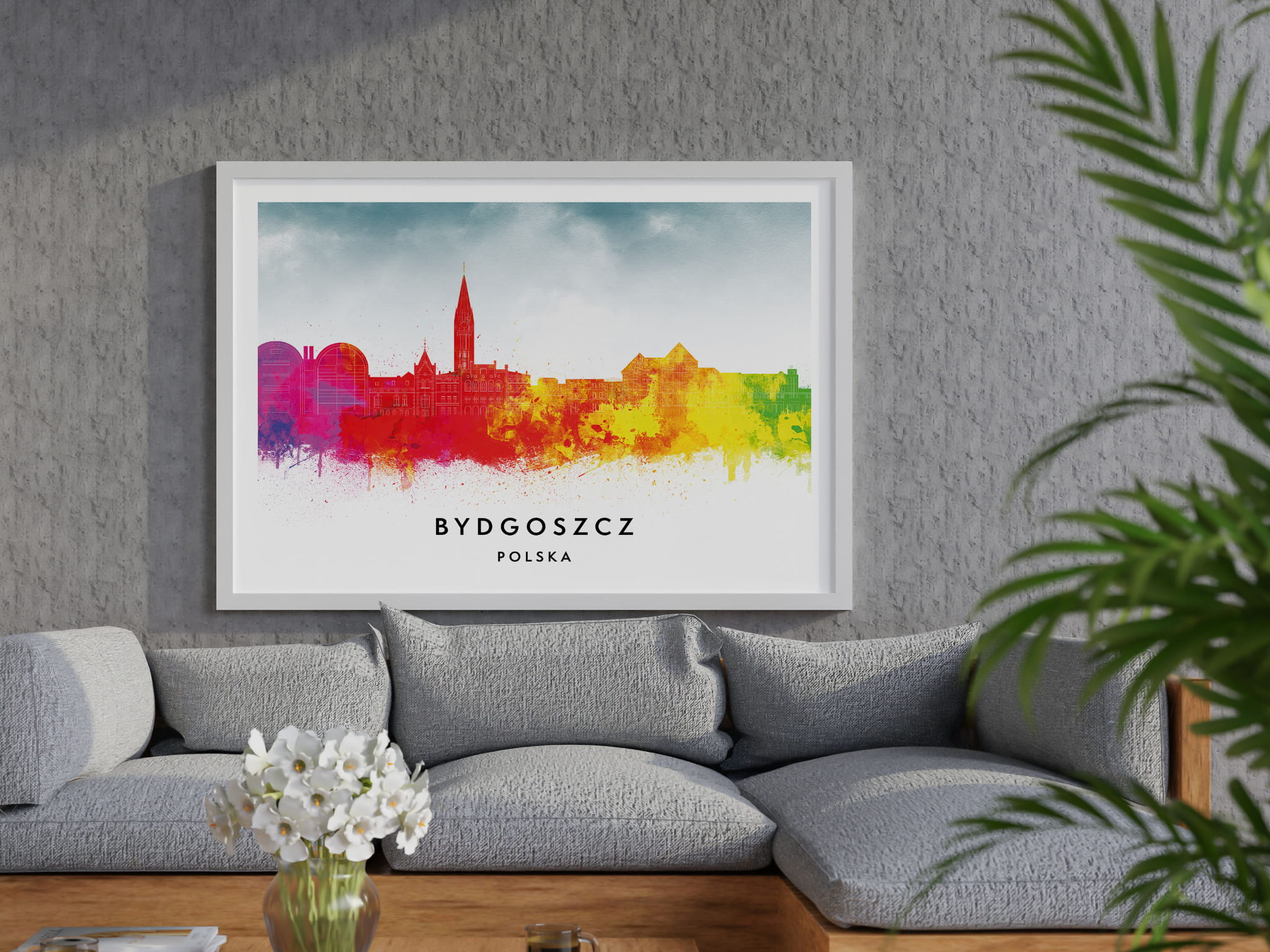 Plakat do salonu skylines Bydgoszcz w stylu Watercolor/ Akwarelowym