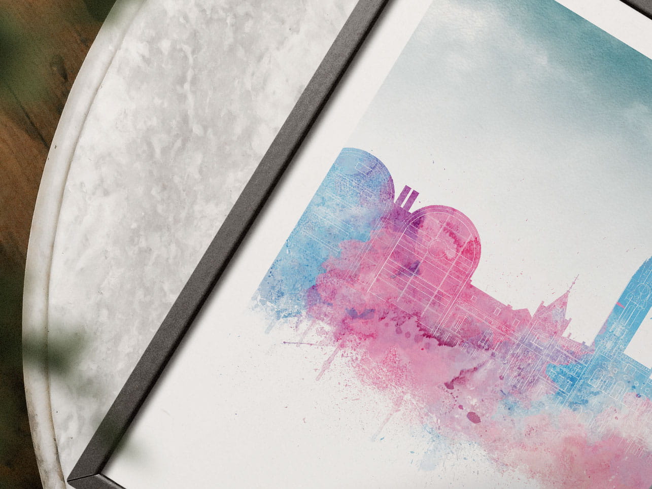 Plakat do salonu skylines Bydgoszcz w stylu Watercolor/ Akwarelowym
