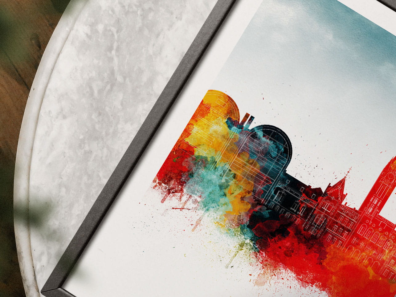 Plakat do salonu skylines Bydgoszcz w stylu Watercolor/ Akwarelowym