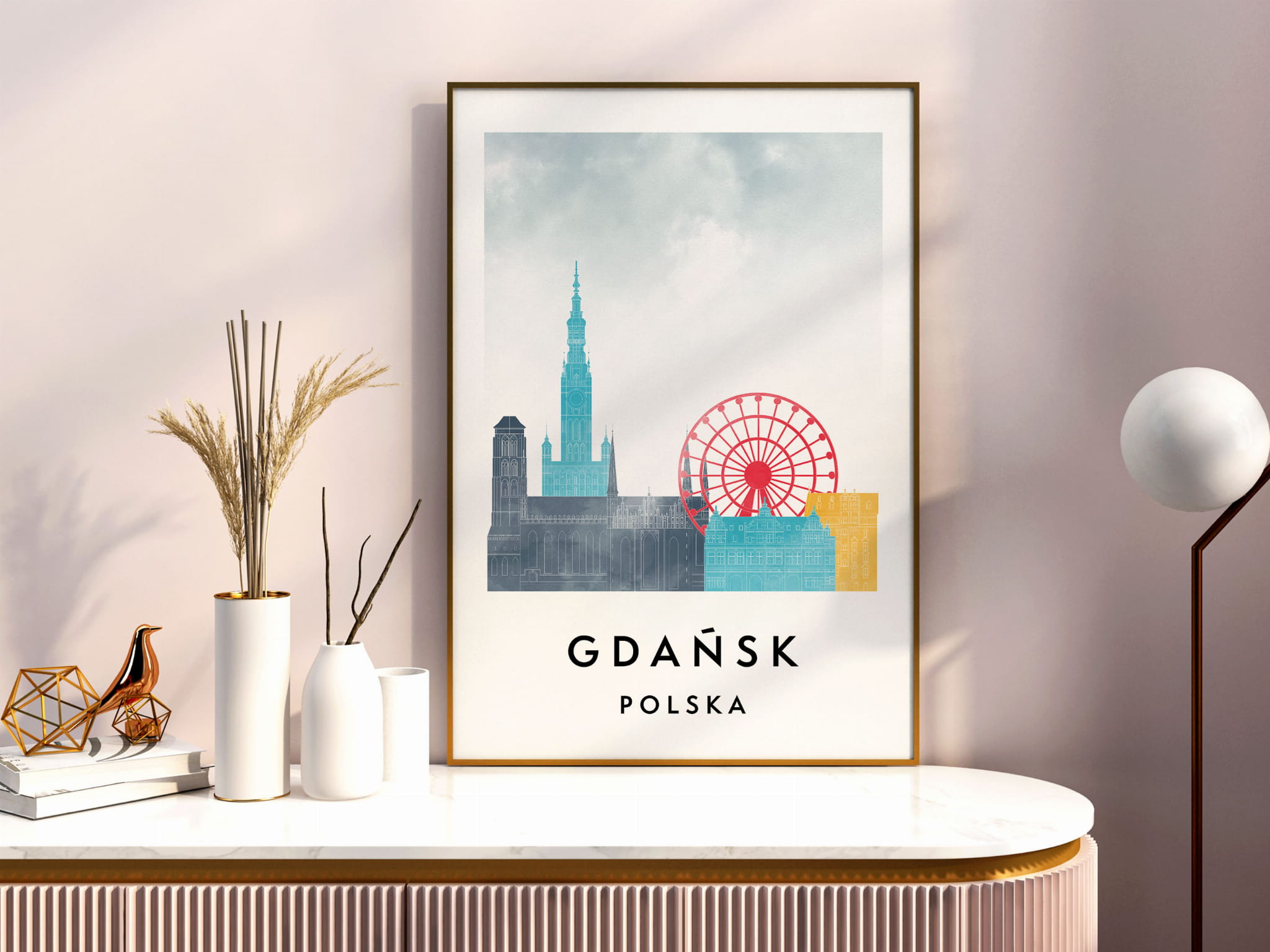 Plakat do salonu skylines Gdańsk stylu Watercolor/ Akwarelowym