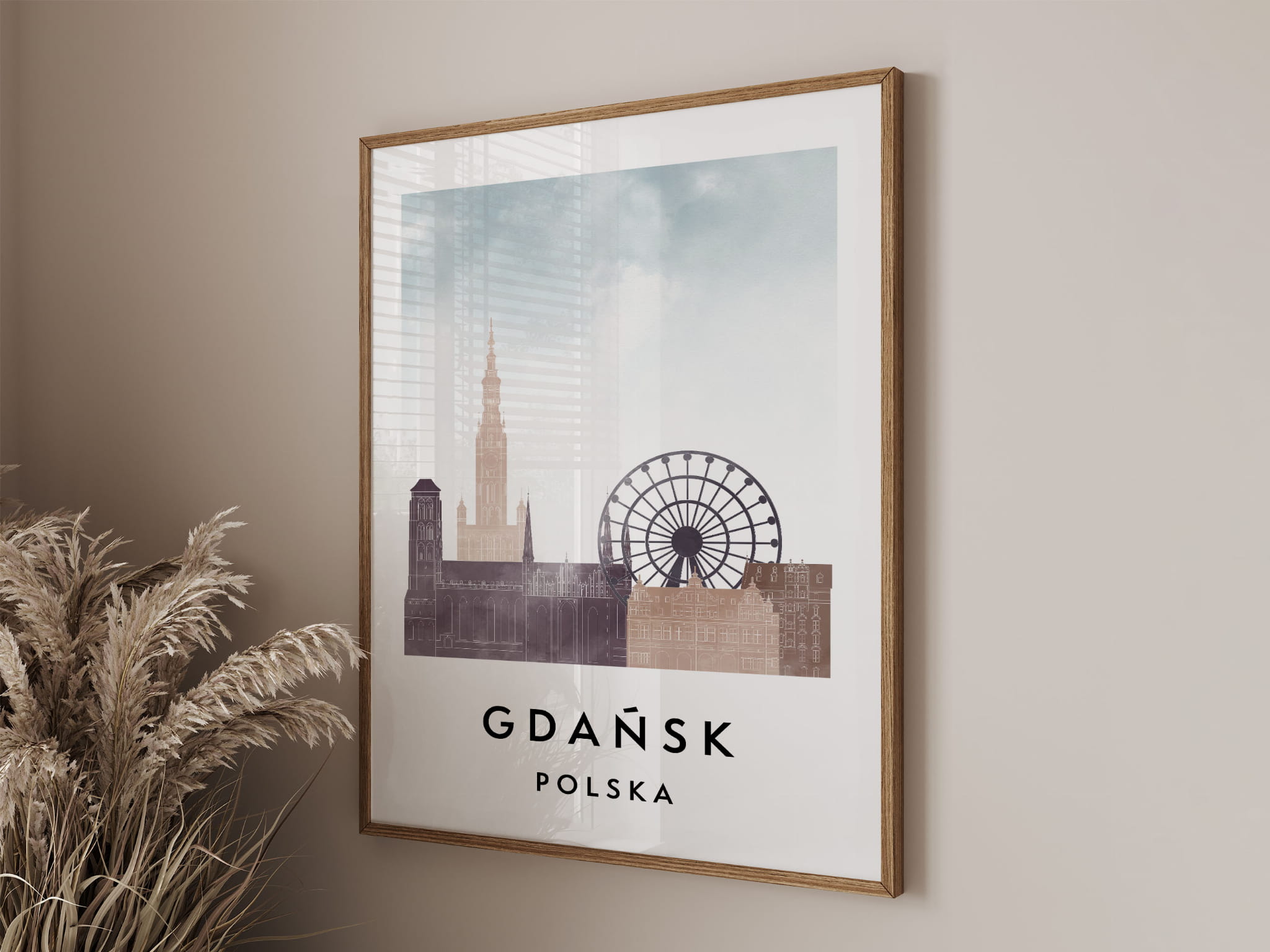 Plakat do salonu skylines Gdańsk stylu Watercolor/ Akwarelowym