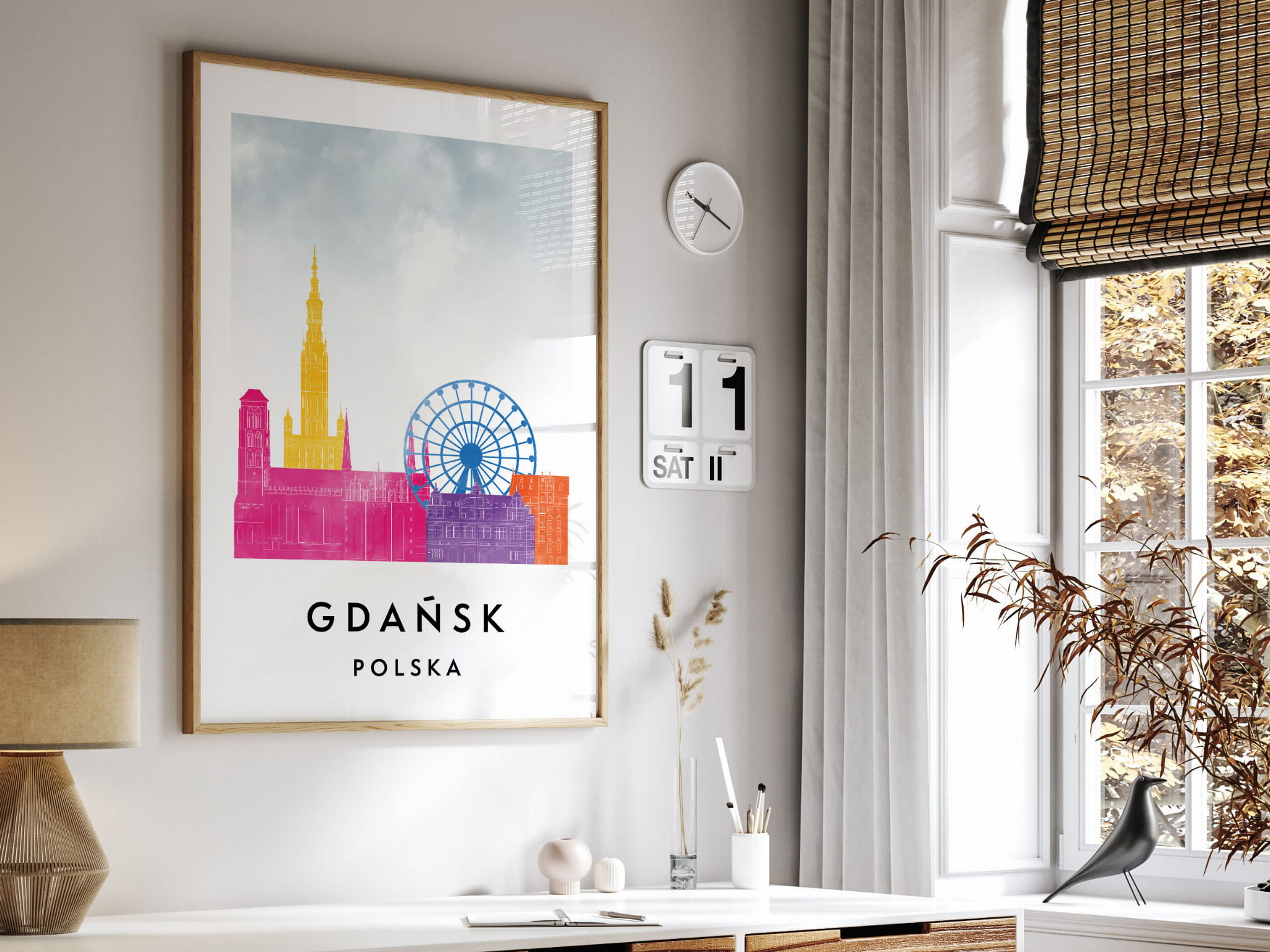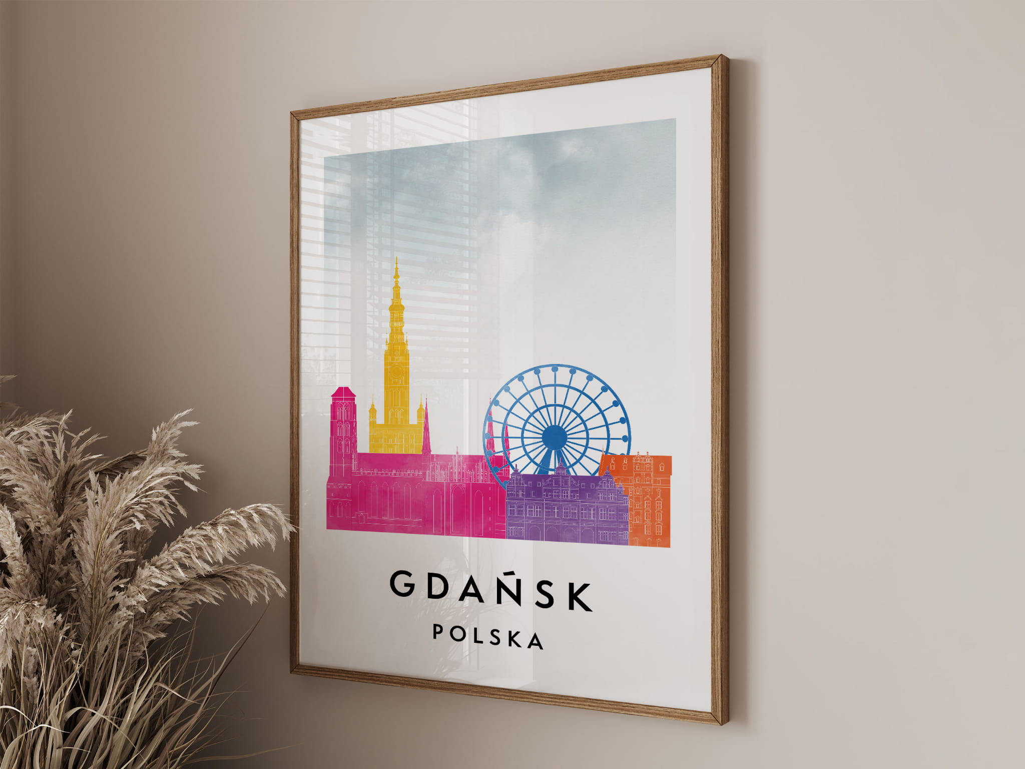 Plakat do salonu skylines Gdańsk stylu Watercolor/ Akwarelowym