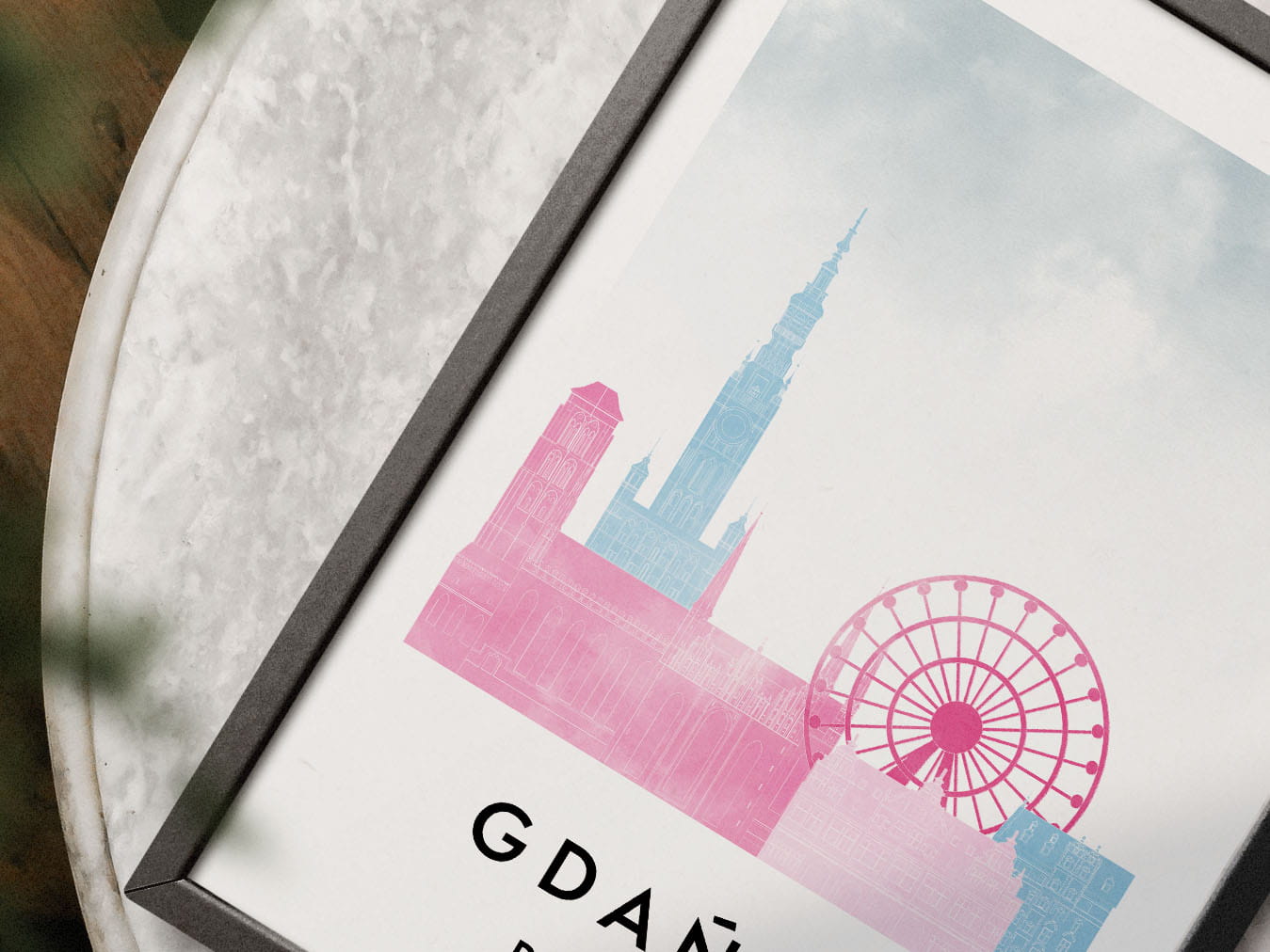 Plakat do salonu skylines Gdańsk stylu Watercolor/ Akwarelowym