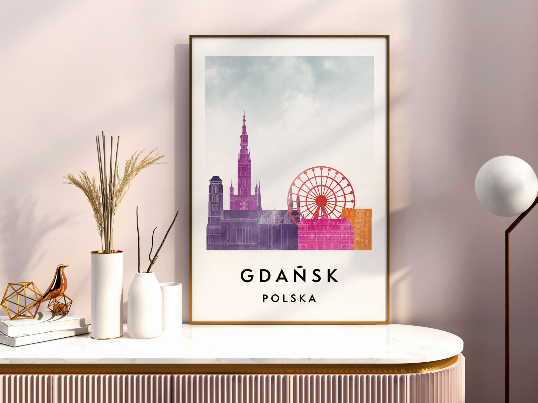 Plakat do salonu skylines Gdańsk stylu Watercolor/ Akwarelowym