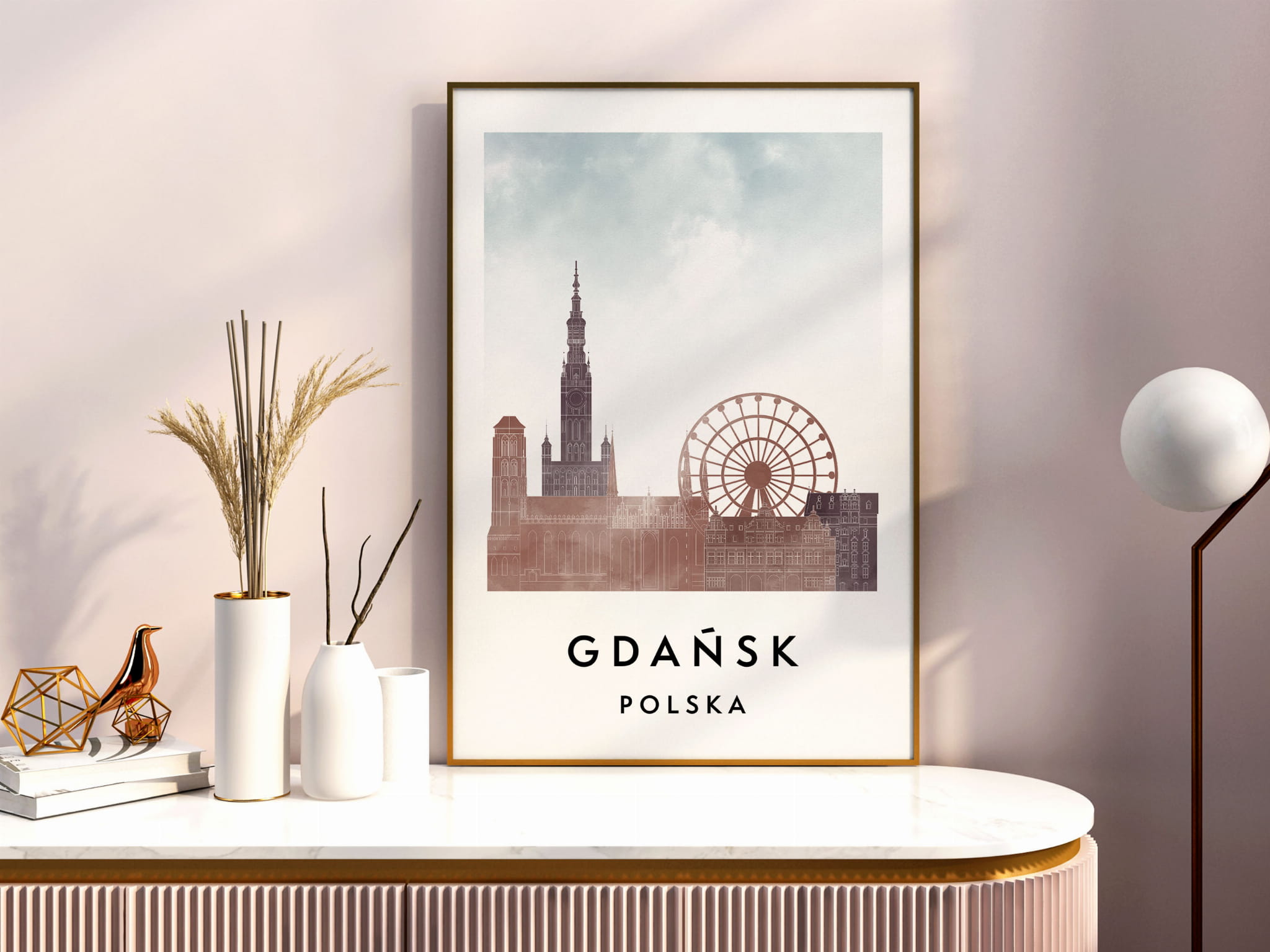 Plakat do salonu skylines Gdańsk stylu Watercolor/ Akwarelowym