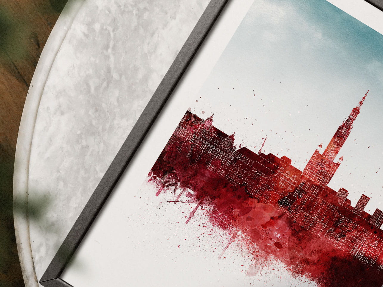 Plakat do salonu skylines Gdańsk w stylu Watercolor/ Akwarelowym