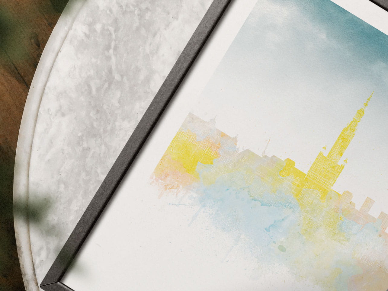 Plakat do salonu skylines Gdańsk w stylu Watercolor/ Akwarelowym