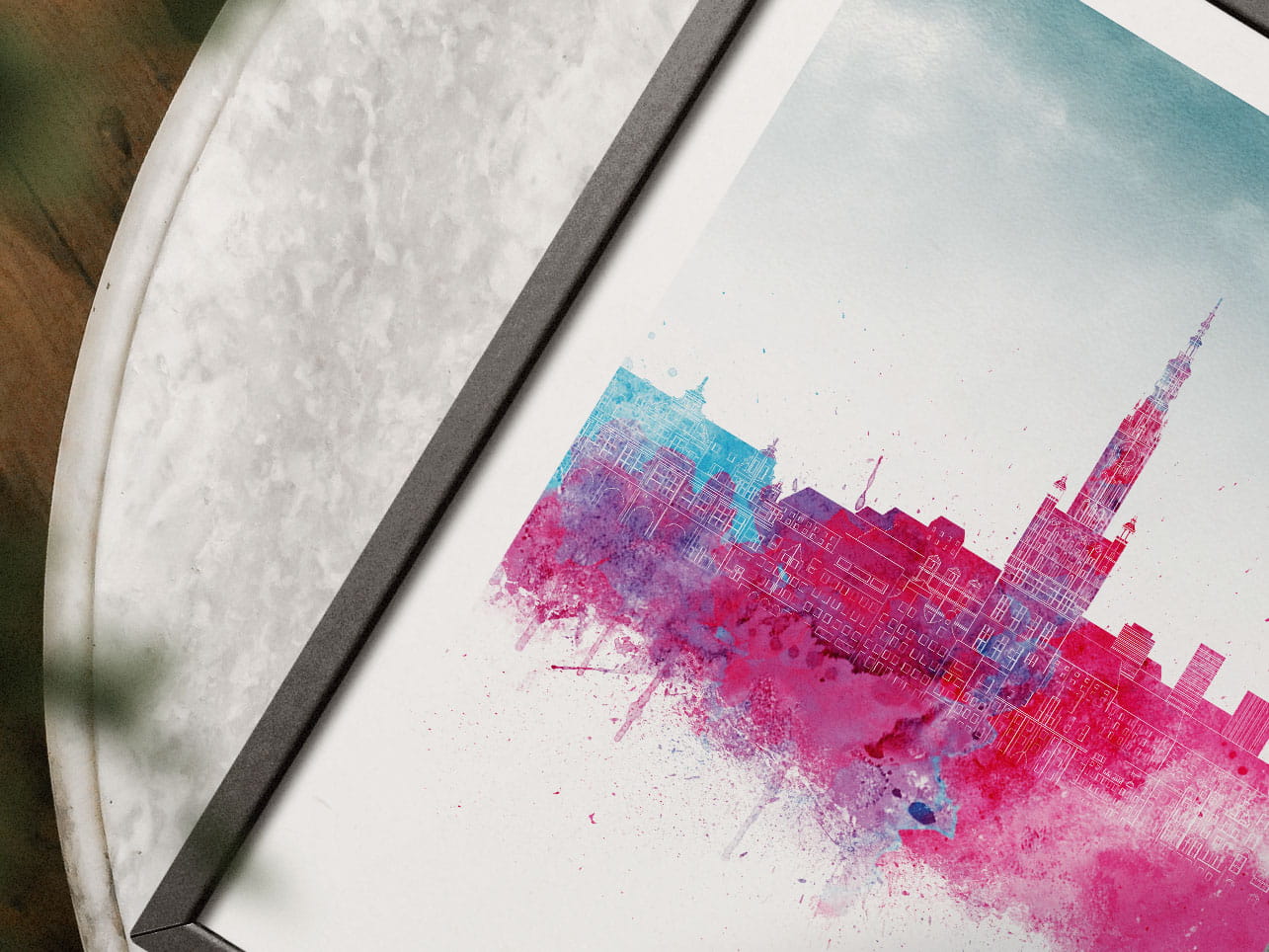 Plakat do salonu skylines Gdańsk w stylu Watercolor/ Akwarelowym