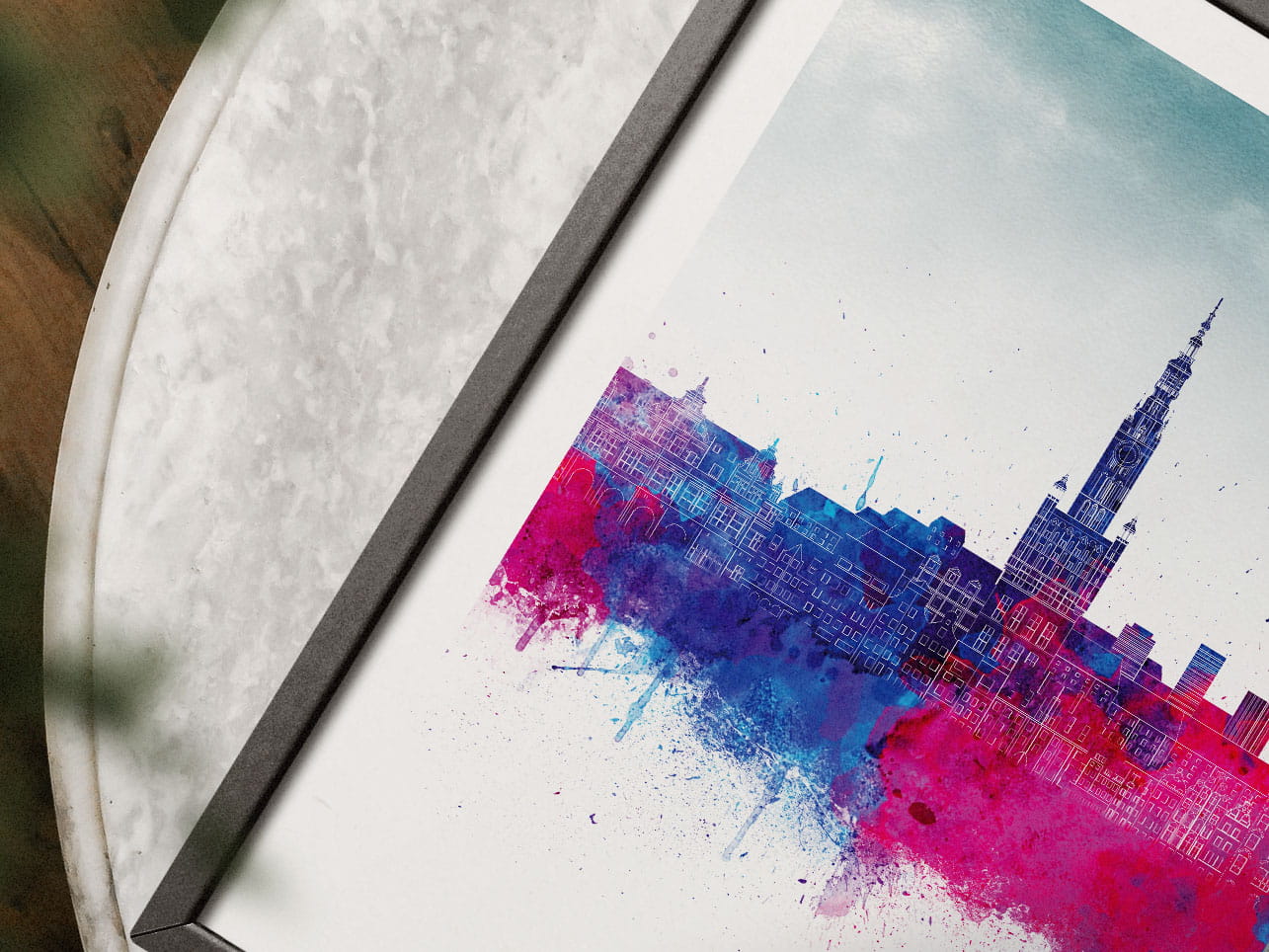 Plakat do salonu skylines Gdańsk w stylu Watercolor/ Akwarelowym
