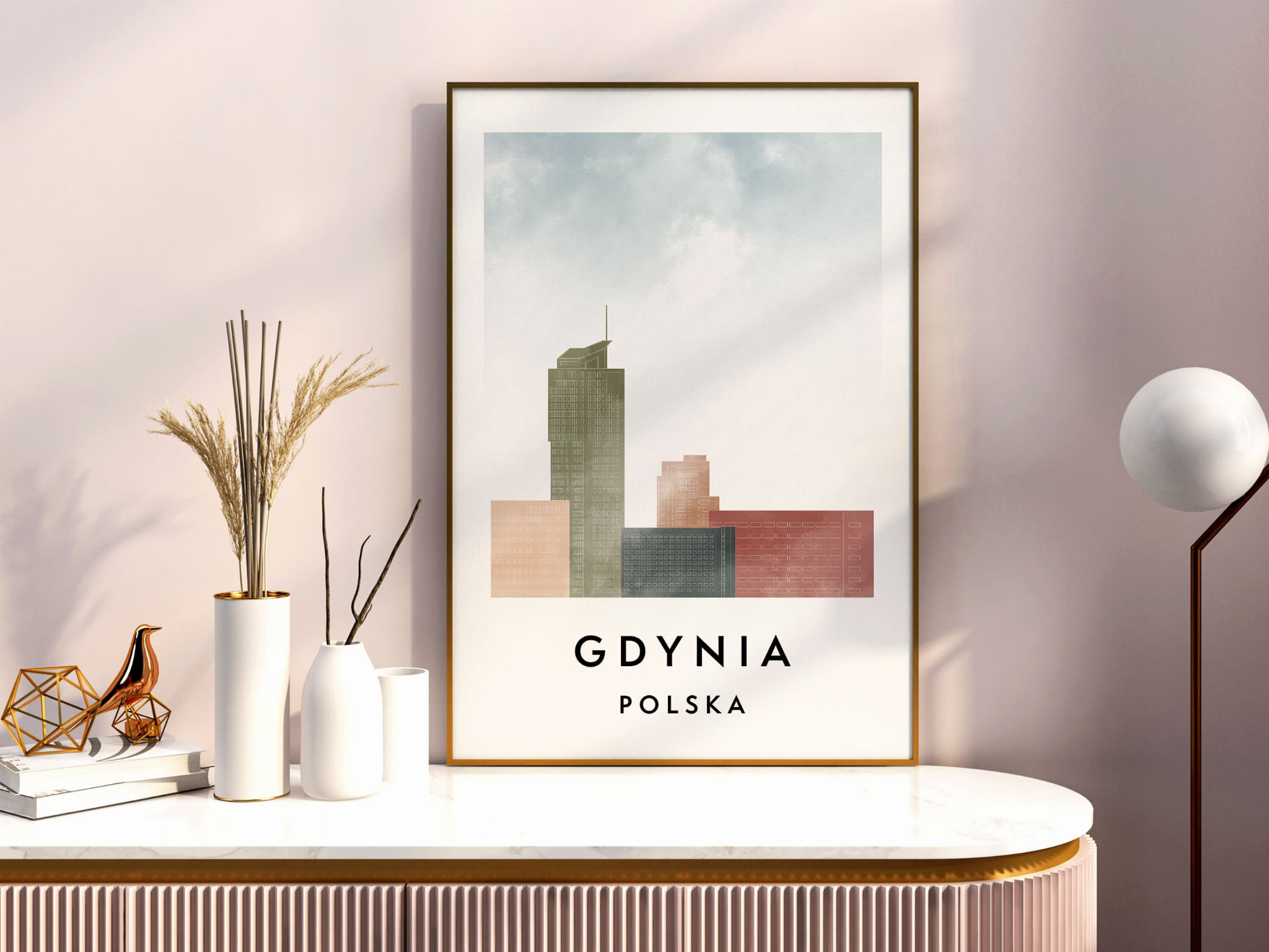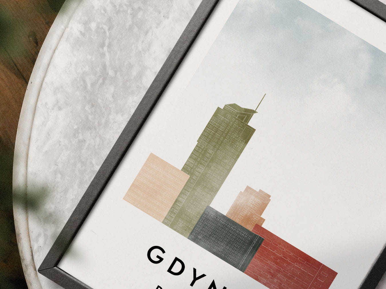 Plakat do salonu skylines Gdynia stylu Watercolor/ Akwarelowym