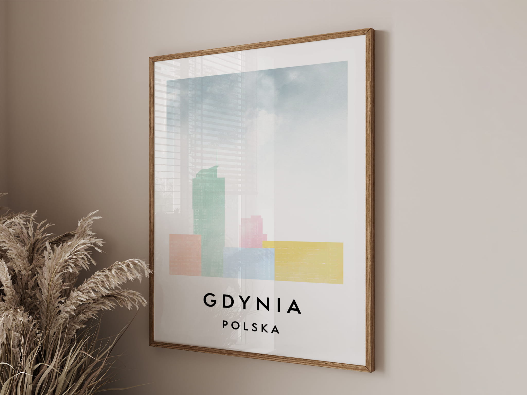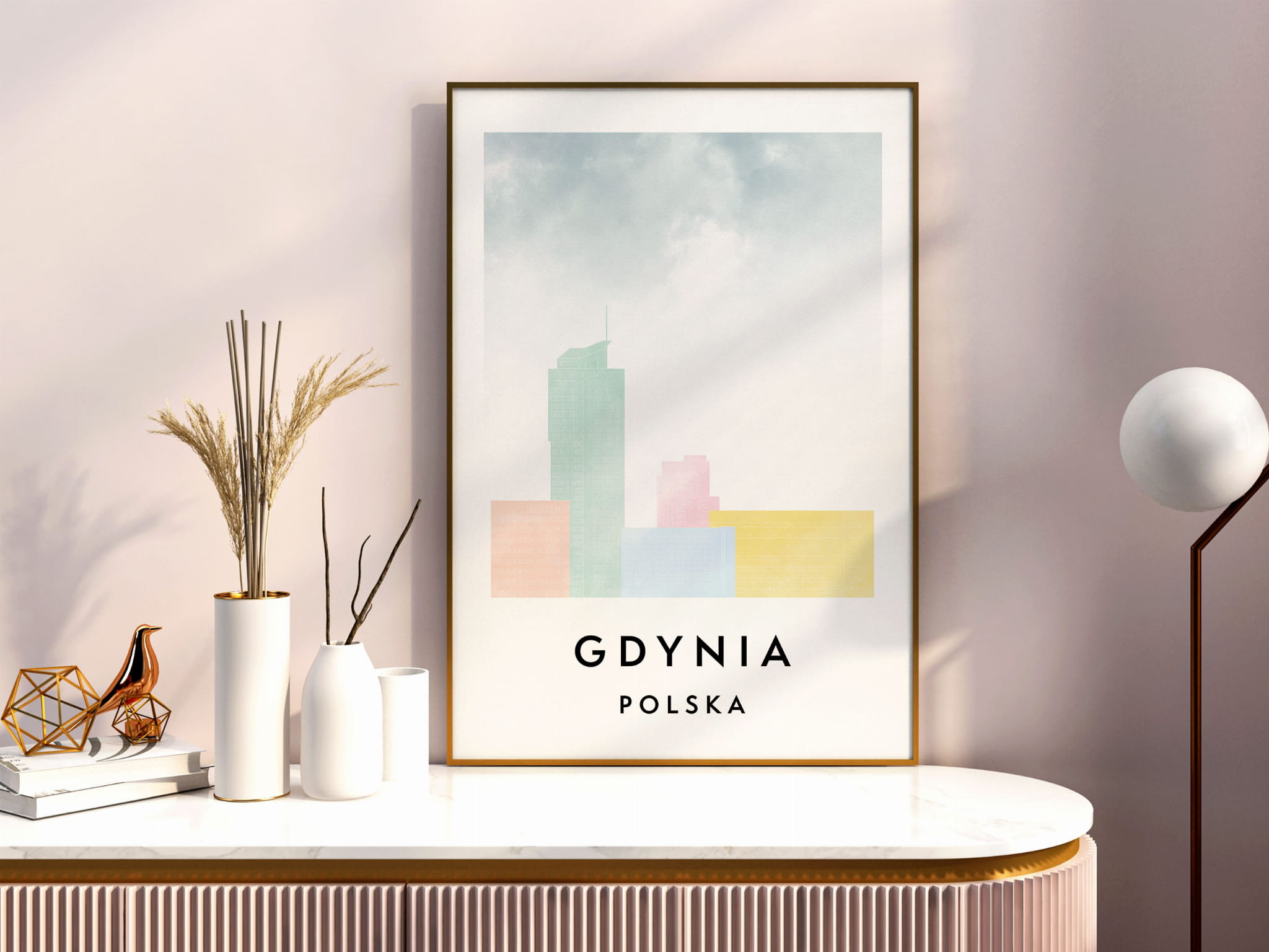 Plakat do salonu skylines Gdynia stylu Watercolor/ Akwarelowym