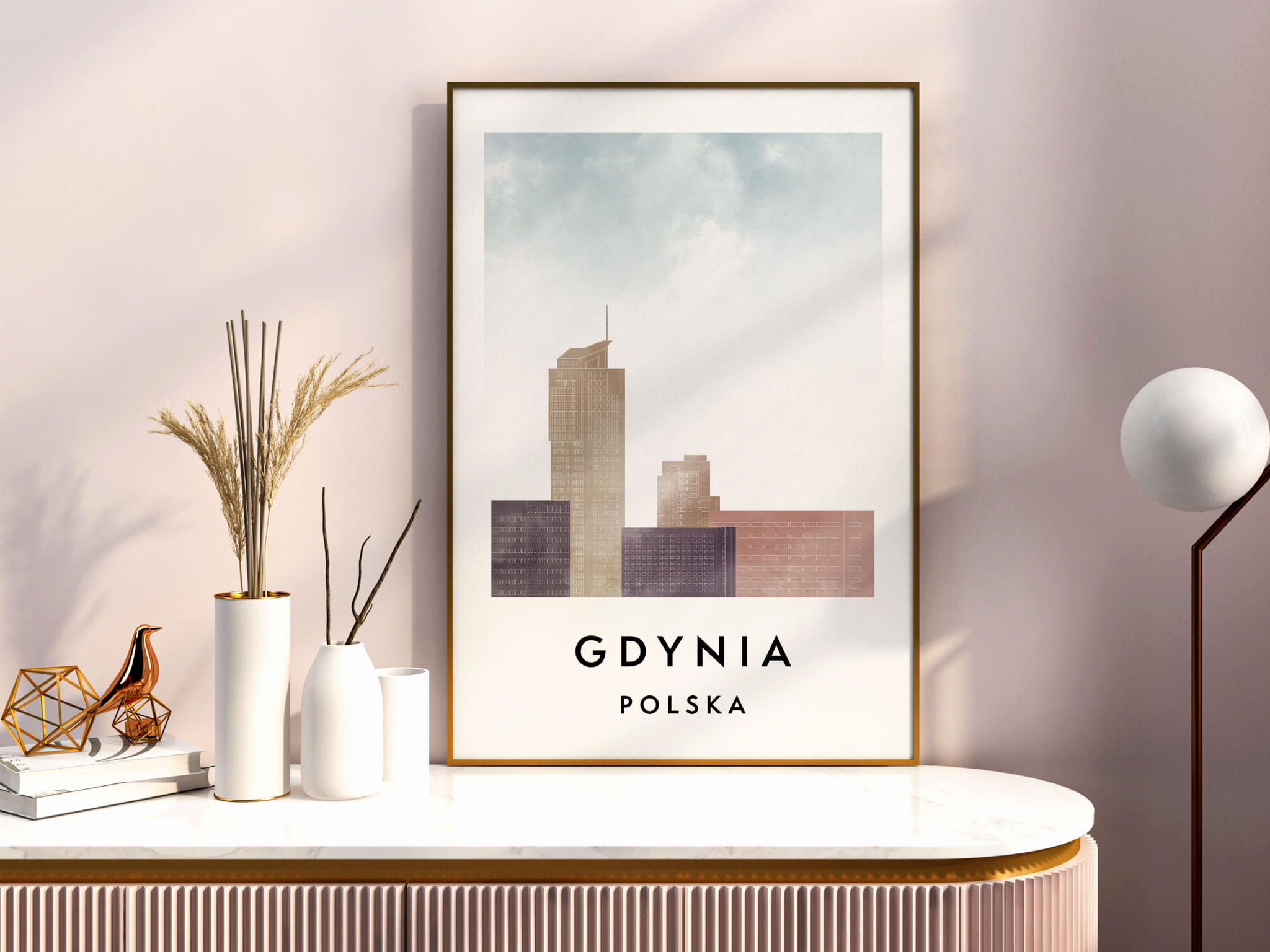 Plakat do salonu skylines Gdynia stylu Watercolor/ Akwarelowym